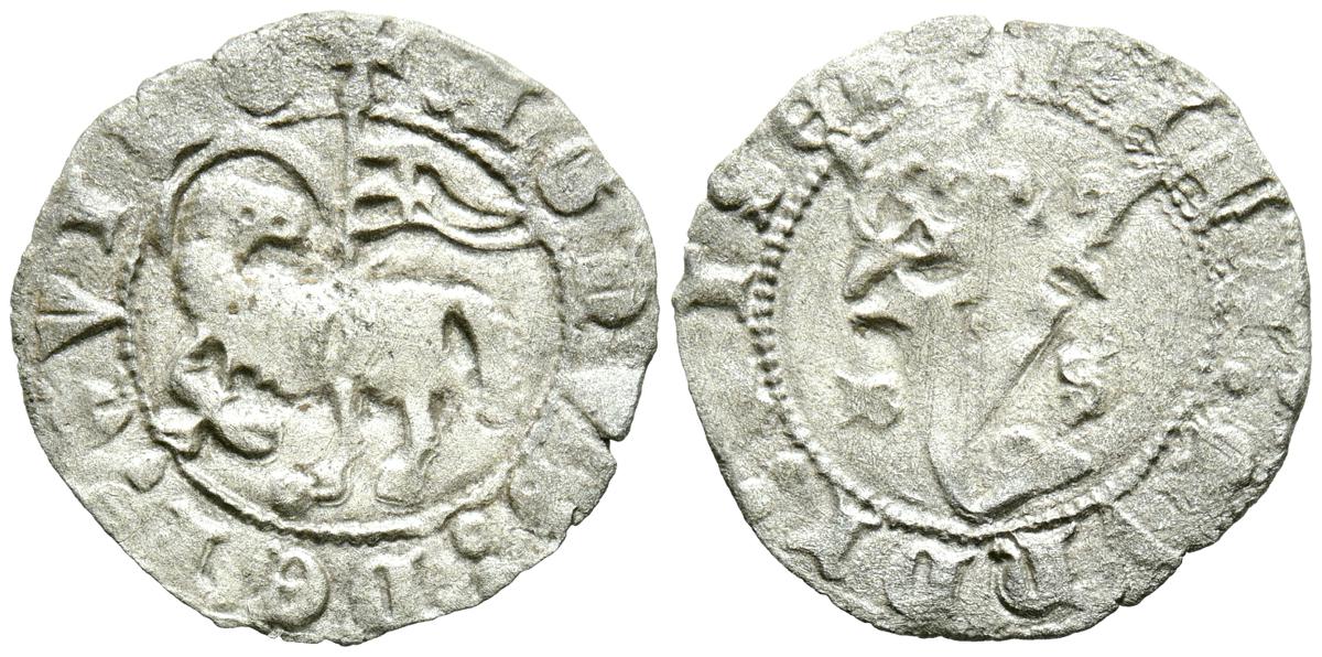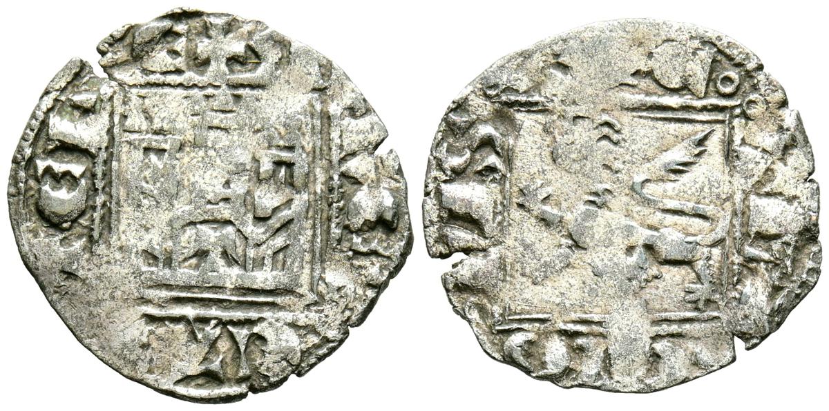 FERNANDO IV (1295-1312). Dinero. (Ve. 0,68g/18mm). Sevilla. (Momeca 45.1A7.2; FAB-325.2, como pepión). Anv: Castillo, debajo S inclinada, todo dentro de gráfila circular, alrededor leyenda: F REGIS CASTELLE. Rev: León a izquierda dentro de gráfila circular, alrededor leyenda: ET LEGIONIS. MBC. Rara.
