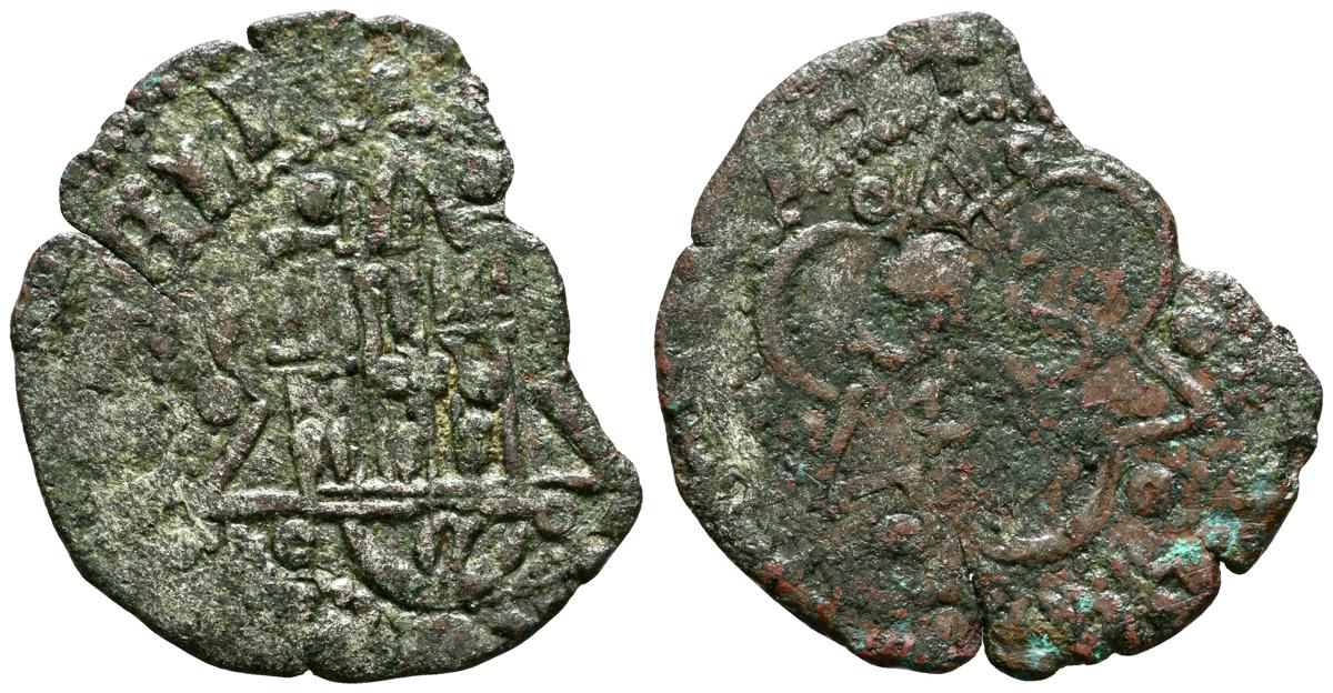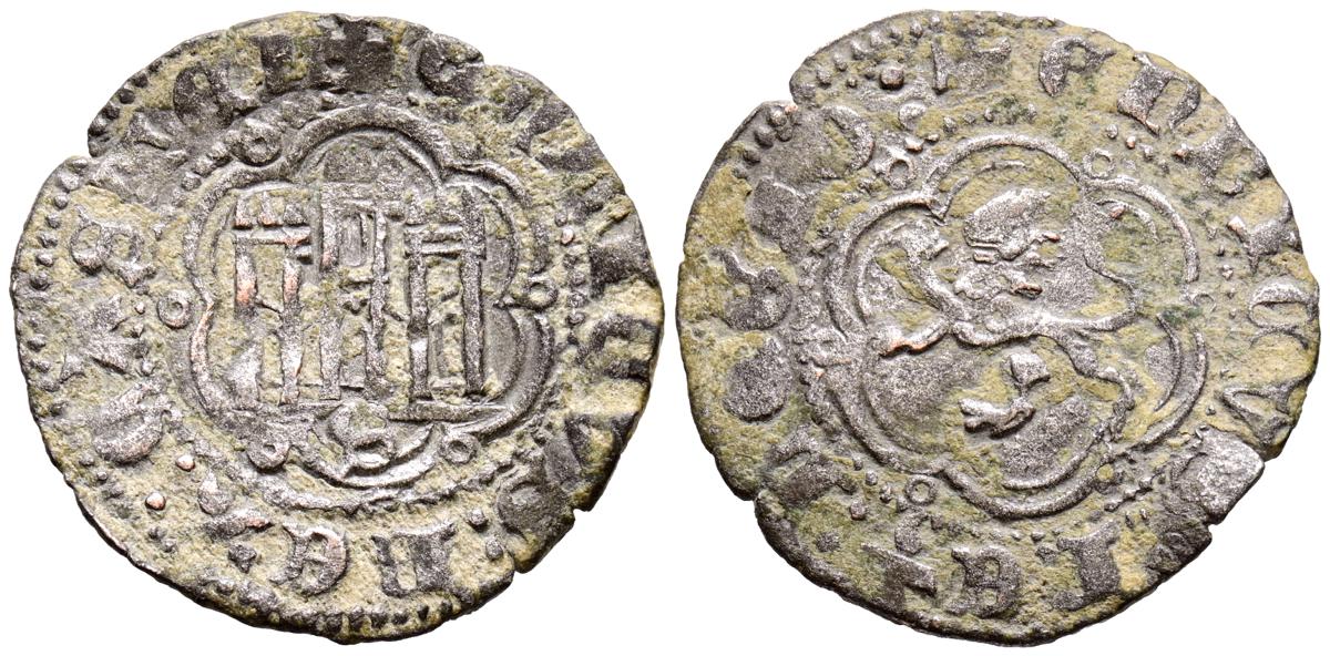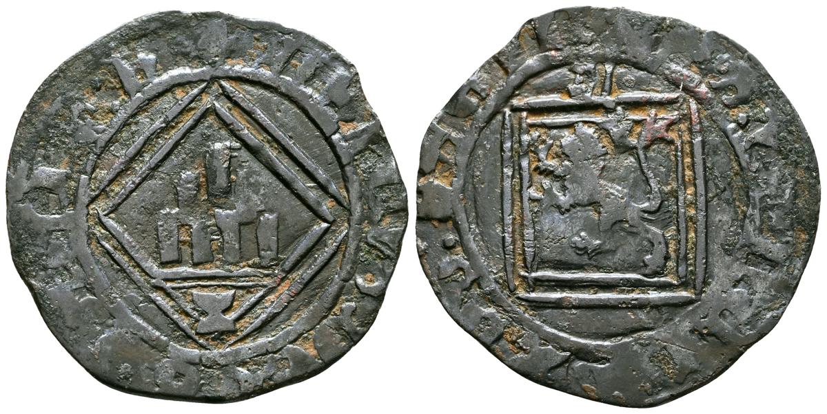 ENRIQUE IV (1454-1474). Maravedí. (Ve. 1,85g/24mm). Sevilla. (Imperatrix E4:20.79; FAB-806). Anv: Castillo, debajo: S, todo dentro de gráfila circular, alrededor leyenda: ENRICVS REX CASTELLE. Rev: León coronado y rampante a izquierda con granada a sus pies, todo dentro de gráfila circular, alrededor leyenda: ENRICVS CARTVS DEI G. MBC/BC+.