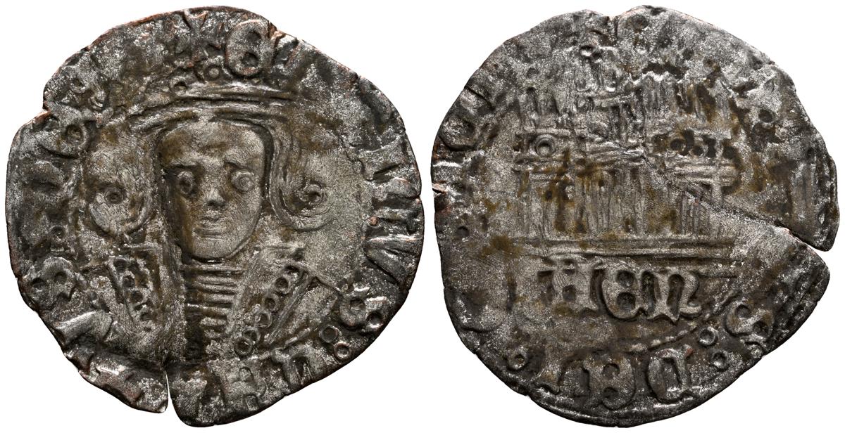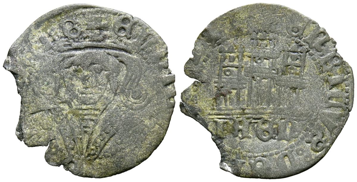 ENRIQUE IV (1454-1474). 1/2 Cuartillo. (Ve. 0,77g/21mm). Jaén. (Imperatrix E4:15.22; FAB-775). Anv: Busto coronado de Enrique IV de frente dentro de gráfila circular, alrededor leyenda: ENRICVS DEI GRACIA. Rev: Castillo, debajo IAEN, todo dentro a una doble gráfila circular, alrededor leyenda: ENRICVS DEI GRACIA. BC+. Cospel faltado.