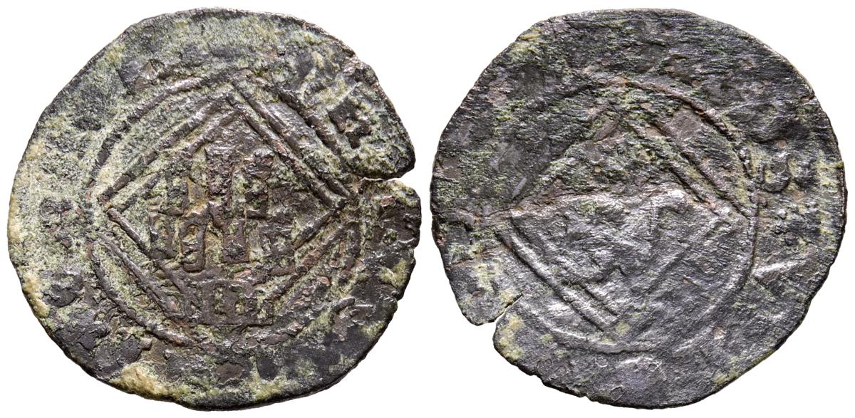 ENRIQUE IV (1454-1474). 1/2 Blanca. (Ve. 0,66g/18mm). Córdoba. (Momeca 76.C2, como Cuenca; FAB-826). Anv: Castillo, debajo C, todo dentro de gráfila mixta de ángulos y arcos, alrededor leyenda: ENRICVS REX CASTELL. Rev: León coronado y rampante a izquierda dentro de gráfila mixta de ángulos y arcos, alrededor leyenda: ENRICVS REX CASTEL. BC+/BC-. Cospel faltado. Muy escasa.