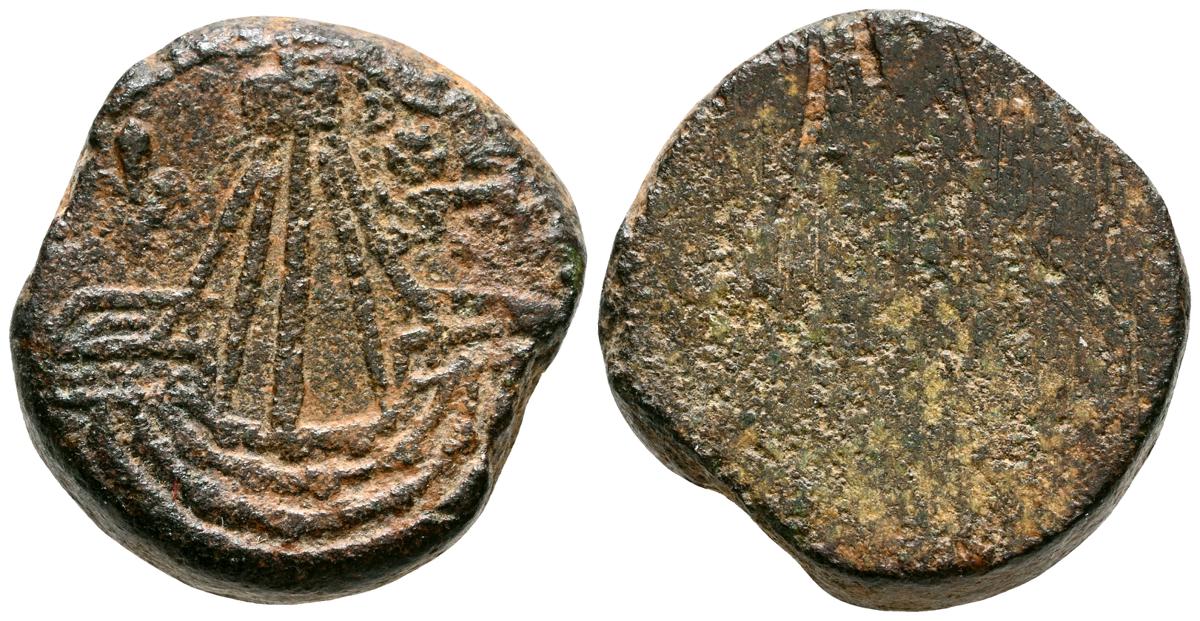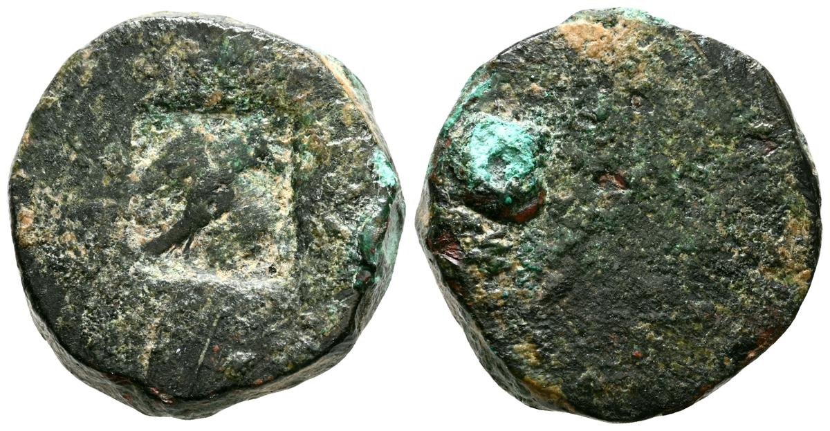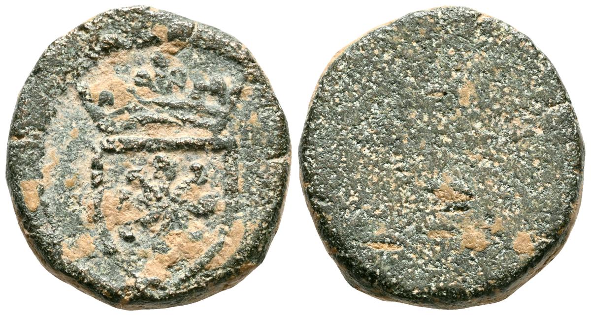 Ponderal de Croat. (Ae. 2,94g/14mm). Siglo XIV. (Crusafont 15). Anv: Cabeza coronada a izquierda. Rev: Cruz patada, tres puntos en primer y cuarto cuadrante y roeles en segundo y tercer cuadrante. RC/BC+.