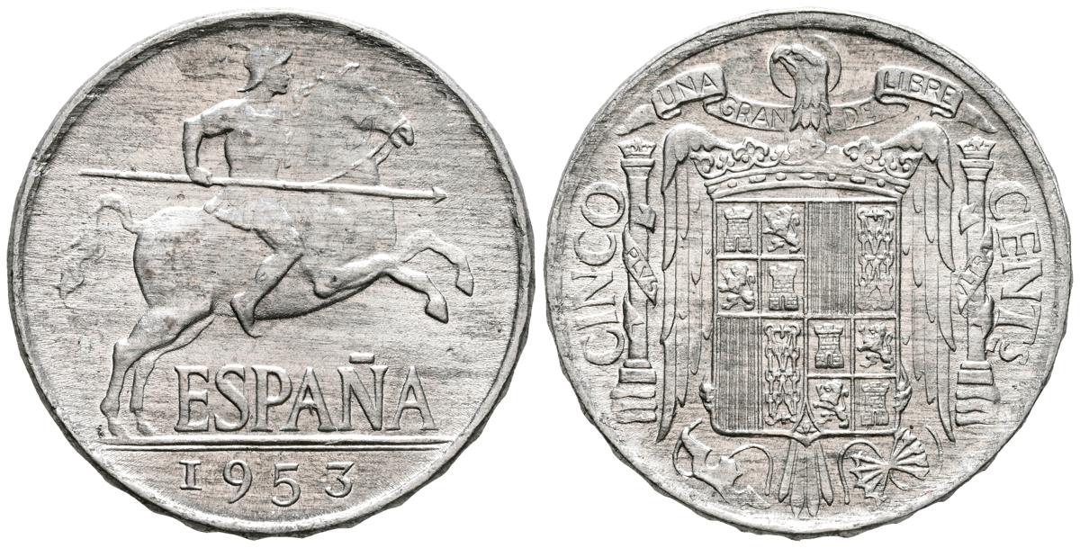 ESTADO ESPAÑOL (1936-1975). 5 Céntimos. (Al. 1,11g/20mm). 1953. Madrid. (Cal-2019-4). SC. Pleno brillo original.