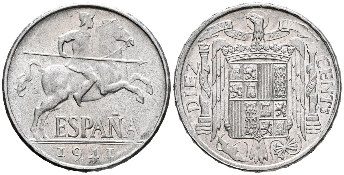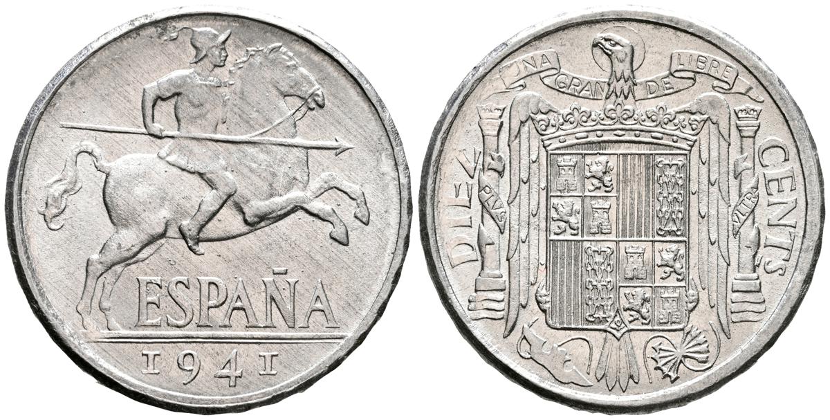 ESTADO ESPAÑOL (1936-1975). 10 Céntimos. (Al. 1,85g/23mm). 1941. Madrid. (Cal-2019-9). Leyenda: PLVS. SC.