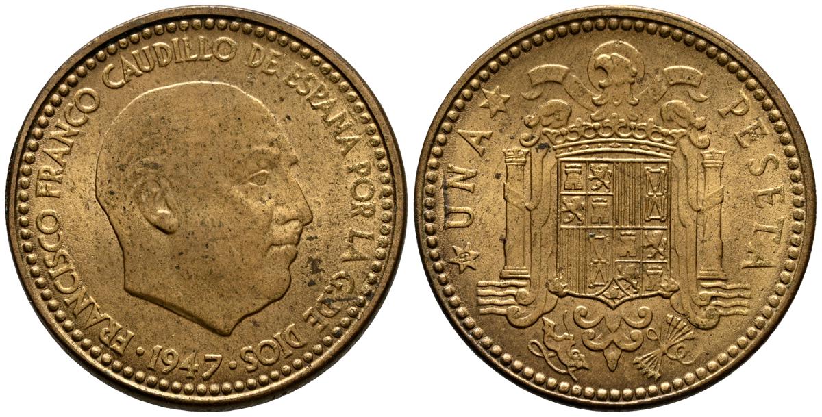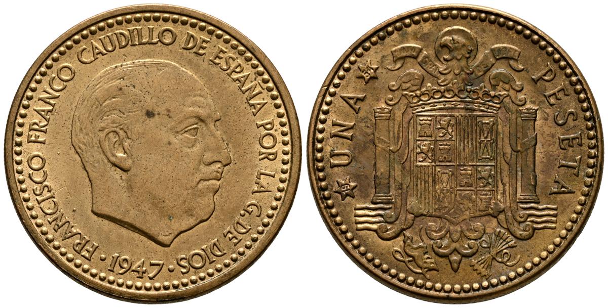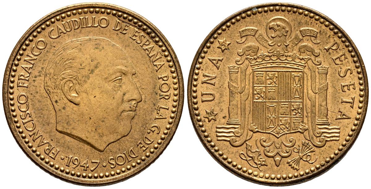 ESTADO ESPAÑOL (1936-1975). 1 Peseta. (Al-Ae. 3,44g/21mm). 1947 *19-53. Madrid. (Cal-2019-53). SC-.