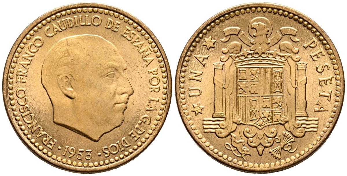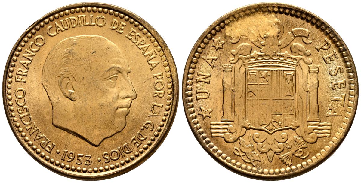 ESTADO ESPAÑOL (1936-1975). 1 Peseta. (AlAe. 3,52g/20mm). 1953 *19-63. Madrid. (Cal-2019-63). SC. Precioso tono.