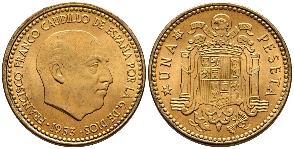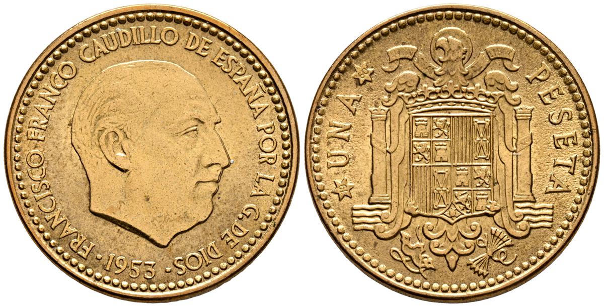 ESTADO ESPAÑOL (1936-1975). 1 Peseta. (AlCu. 3,48/21mm). 1953 *19-60. Madrid. (Cal-2019-59). EBC+.