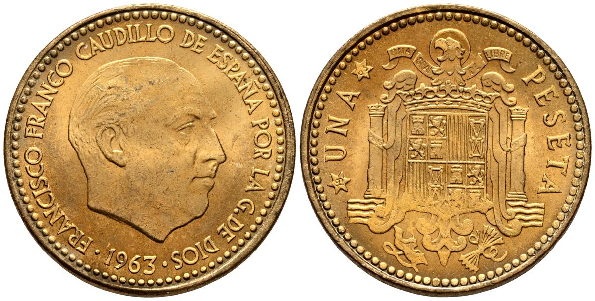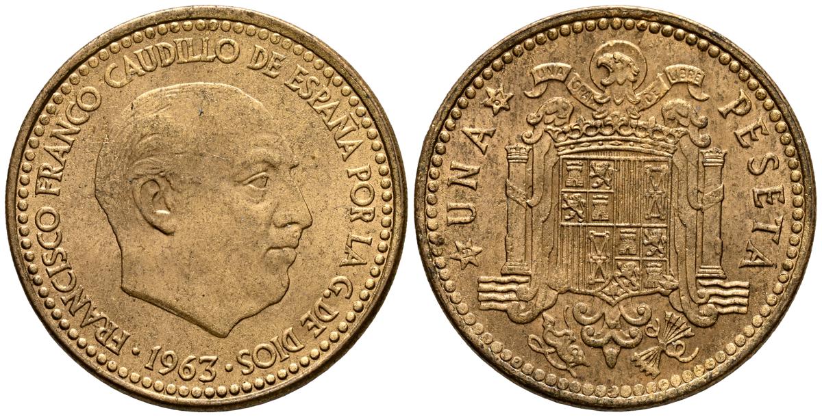 ESTADO ESPAÑOL (1936-1975). 1 Peseta. (AlAe. 3,63g/21mm). 1963 *19-63. Madrid. (Cal-2019-63). SC. Precioso tono.