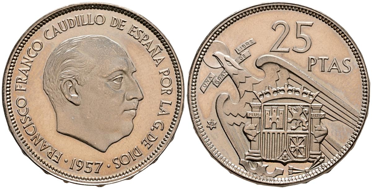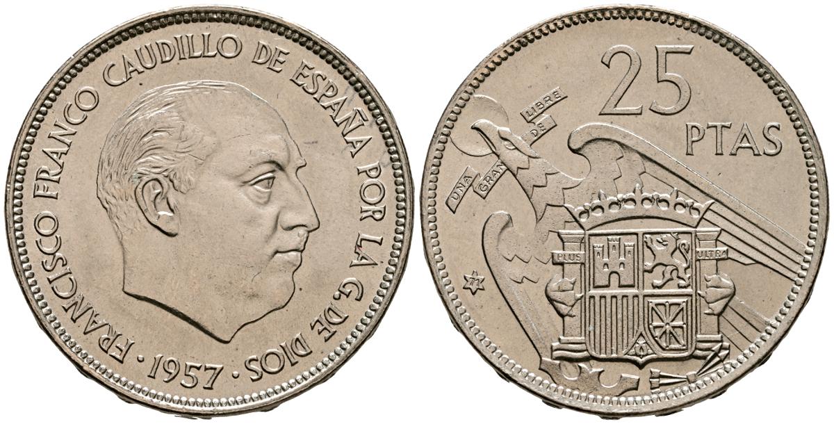 ESTADO ESPAÑOL (1936-1975). 25 Pesetas. (Ni. 8,74g/27mm). 1957 *61. Madrid. (Cal-2019-118). EBC+. Escasa.