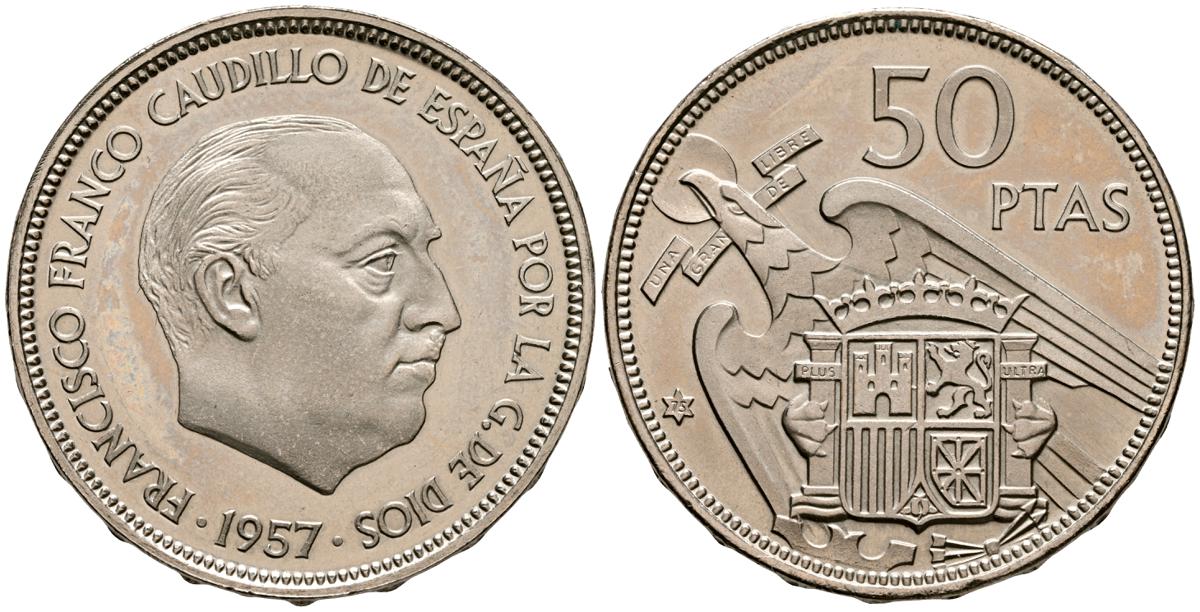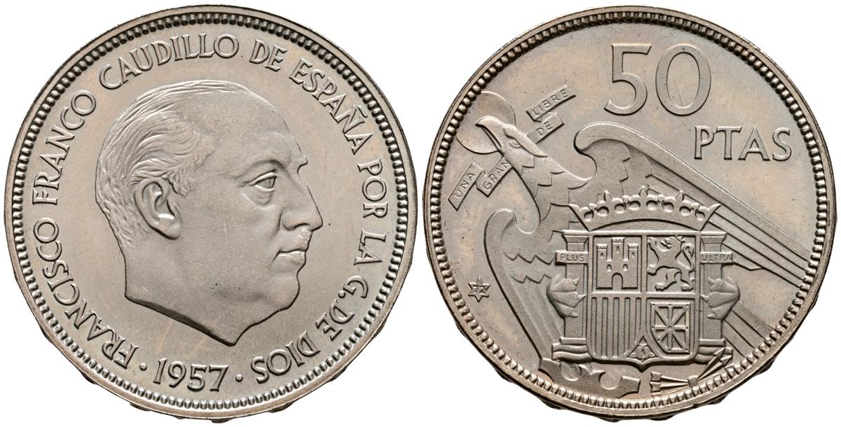 ESTADO ESPAÑOL (1936-1975). 50 Pesetas. (Ni. 12,54g/30mm). 1957 *75. Madrid. (Cal-2019-144). SC. Brillo espejo.