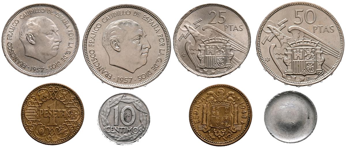 ESTADO ESPAÑOL (1936-1975). Interesante conjunto de 4 piezas diferentes con un magnífico estado de conservación general. Destaca una moneda de 10 Céntimos de 1959 unifaz. IMPRESCINDIBLE EXAMINAR.
