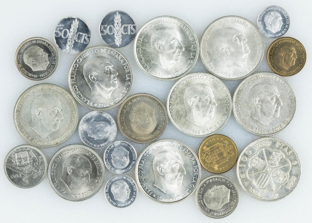 ESTADO ESPAÑOL (1936-1975). Precioso y variado conjunto de 21 monedas con diferentes módulos y fechas destacando un buen número de piezas extráidas de carteras y 8 monedas de 100 Pesetas de 1966 con diferentes estrellas. Alto nivel de conservación general. A EXAMINAR