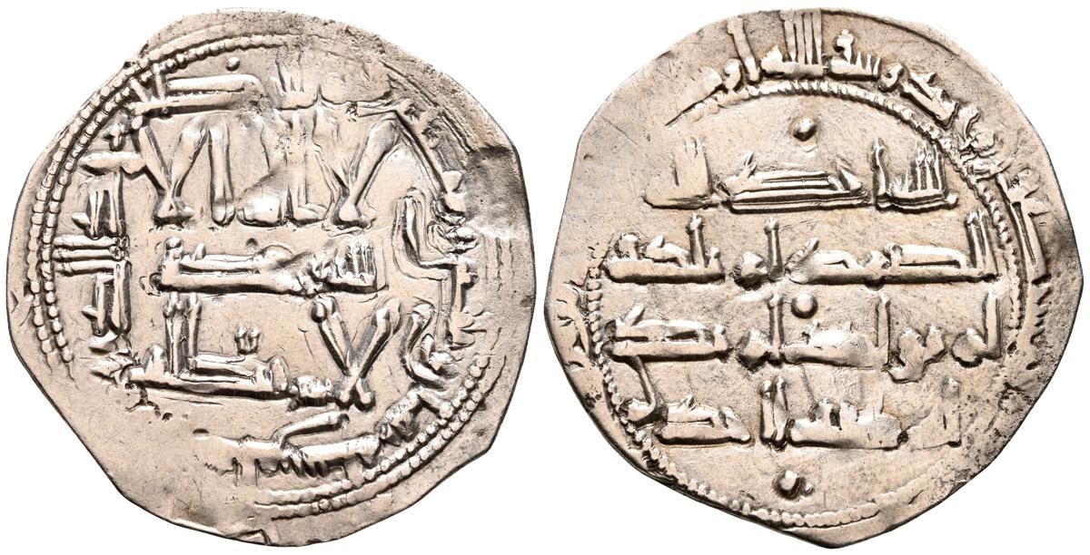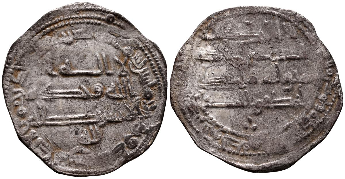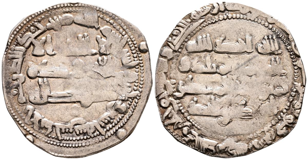 EMIRATO DEPENDIENTE DE CORDOBA, 'Abd al-Rahman II. Dirham. (Ar. 2,16g/24mm). 236H. al-Ándalus / الاندلس. (Vives 210; Frochoso 236.1). Primera acuñación. MBC+. Restos de brillo original.