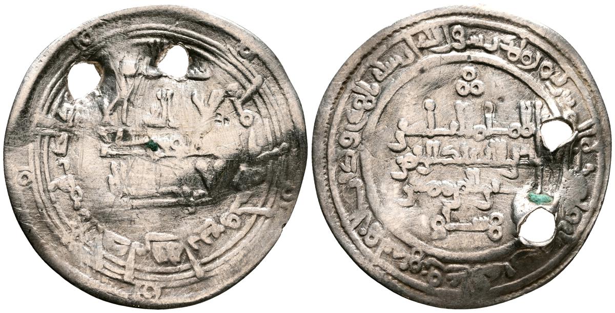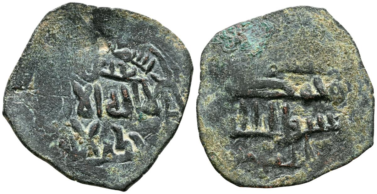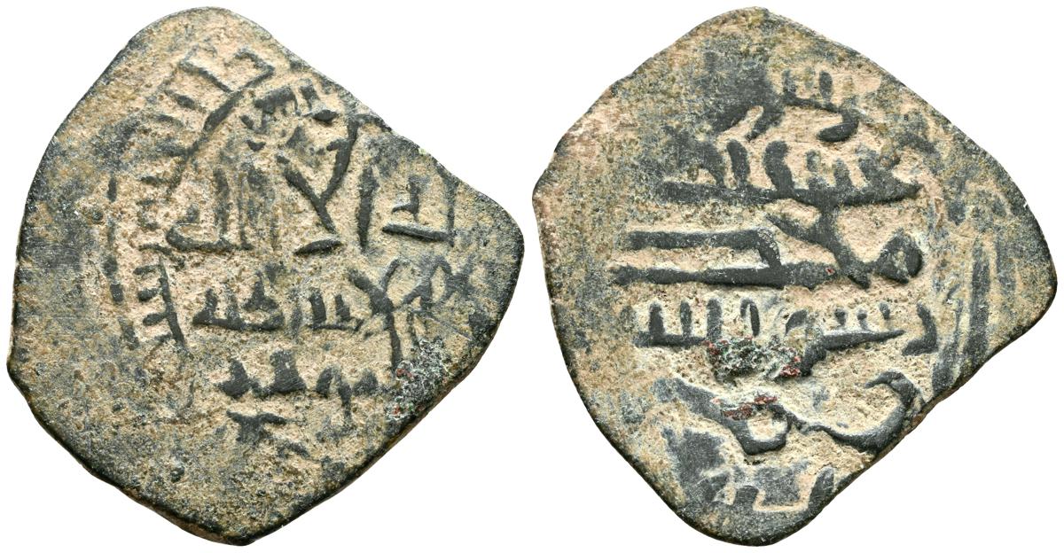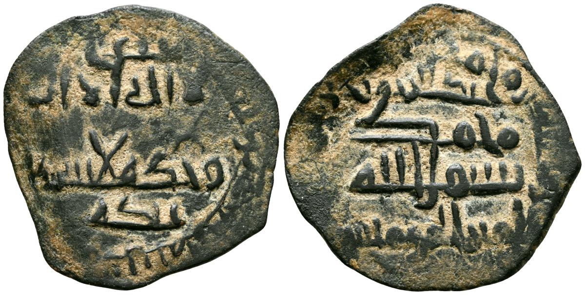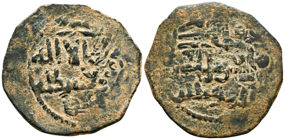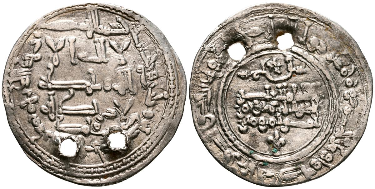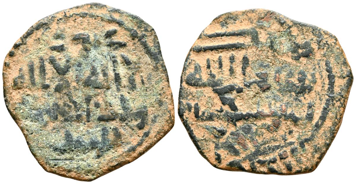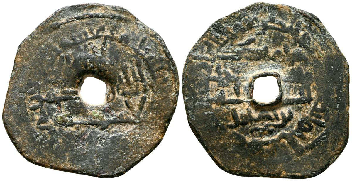 EMIRATO INDEPENDIENTE DE CÓRDOBA. Abd al-Rahman III. Felús. (A.1,59g/23mm). 303H. al-Ándalus /الاندلس. (Vives 334; Millas 183; Frochoso I-77; Frochoso, Francés y Rodríguez (Manquso 19/2024) Tipo 15). Citando a Ibn Bahlul / بن بهلول en IIA. MBC-. Per foración central, aun así, interesantísimo y raro ejemplar.