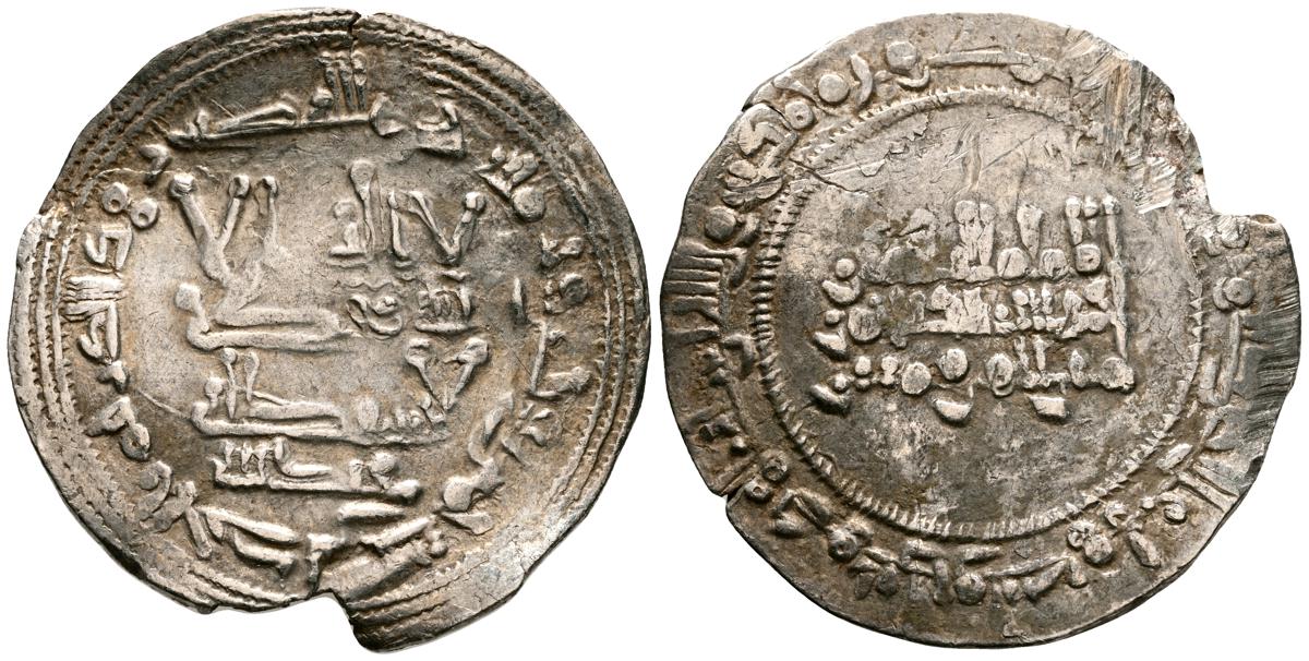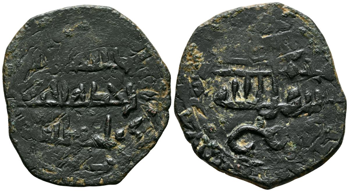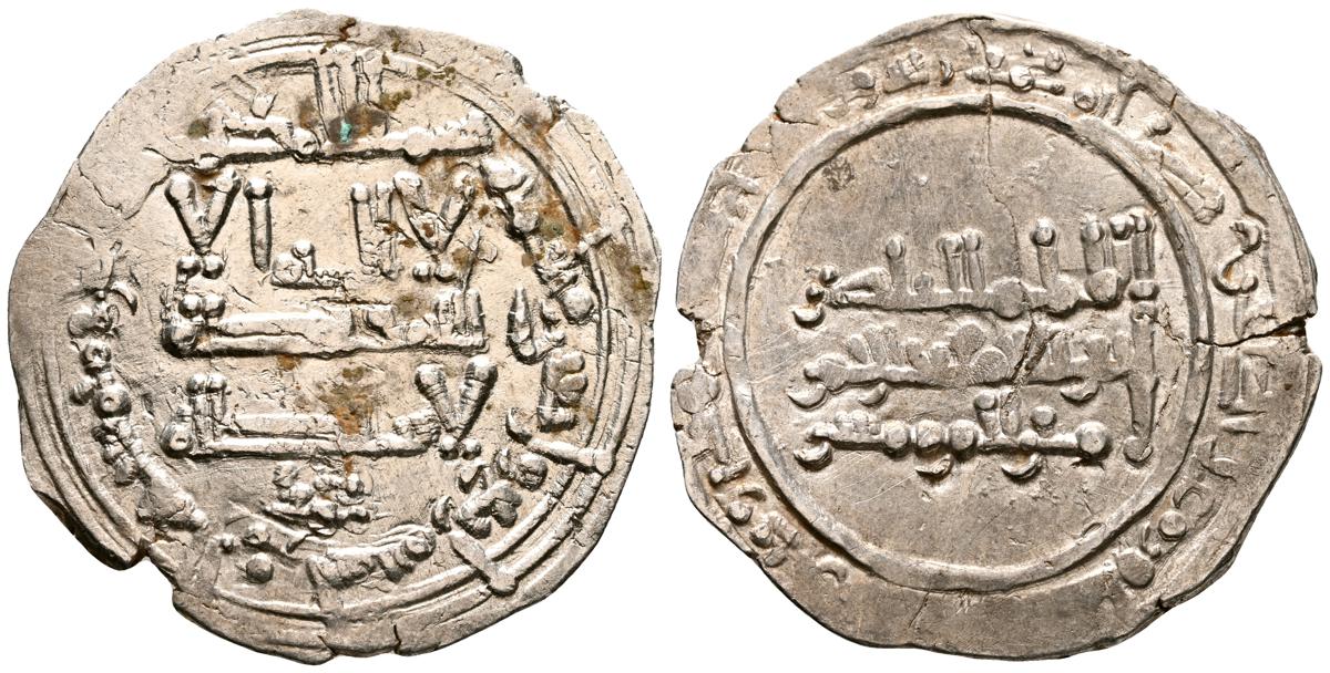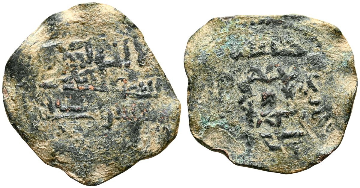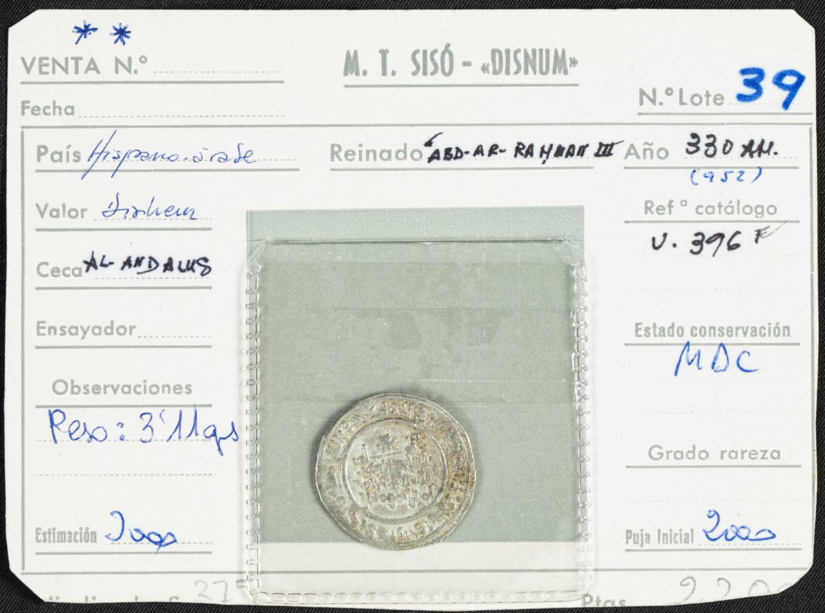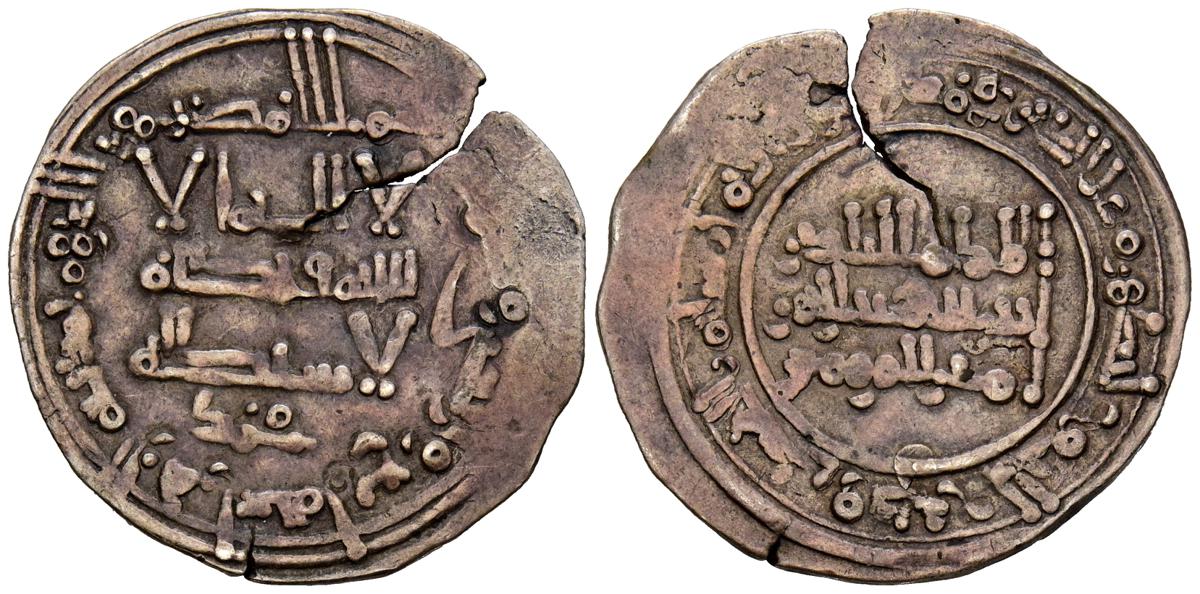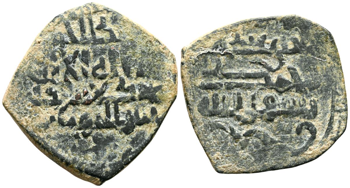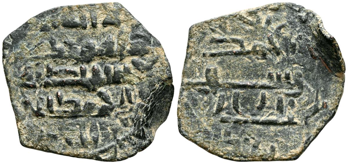 EMIRATO INDEPENDIENTE DE CÓRDOBA. Abd al-Rahman III. Felús. (A.1,59g/23mm). 303H. al-Ándalus /الاندلس. (Vives 334; Millas 183; Frochoso I-77; Frochoso, Francés y Rodríguez (Manquso 19/2024) Tipo 15). Citando a Ibn Bahlul / بن بهلول en IIA. MBC-. Per foración central, aun así, interesantísimo y raro ejemplar.