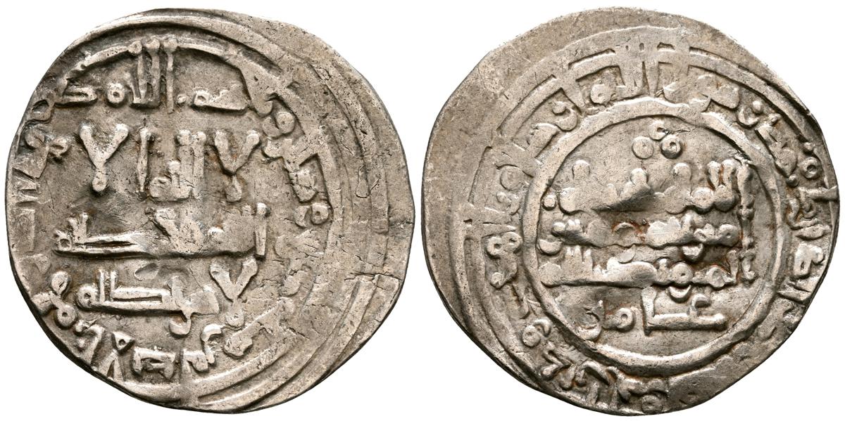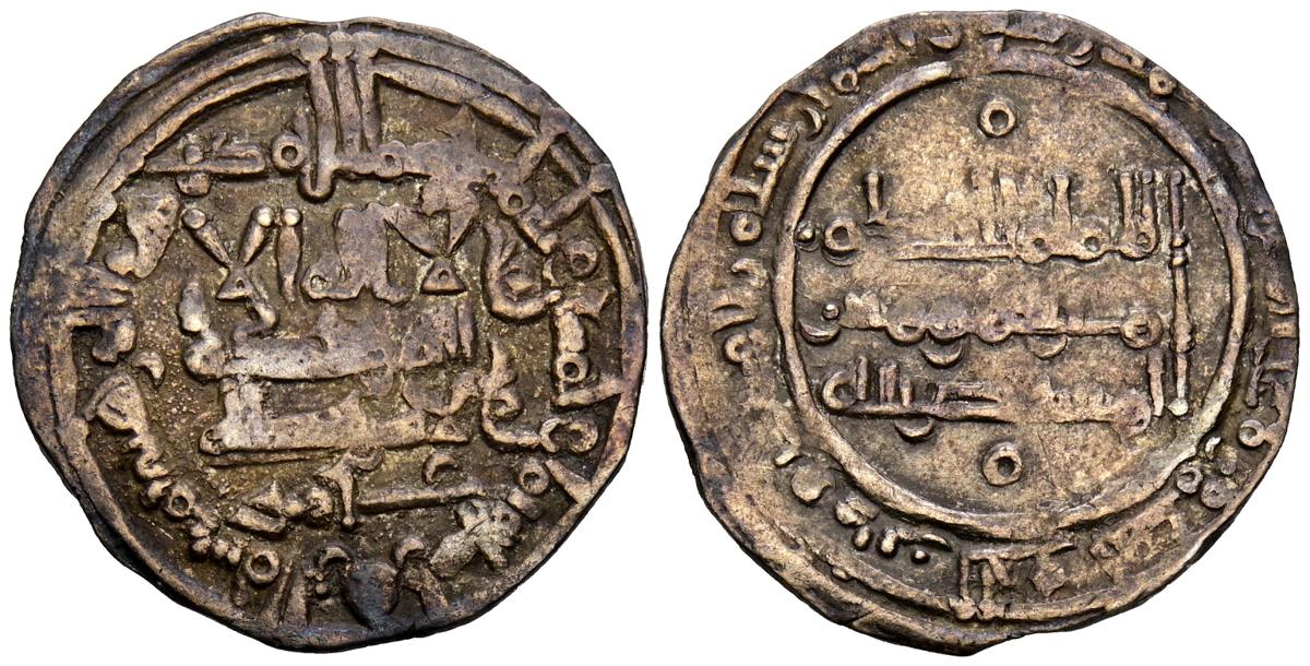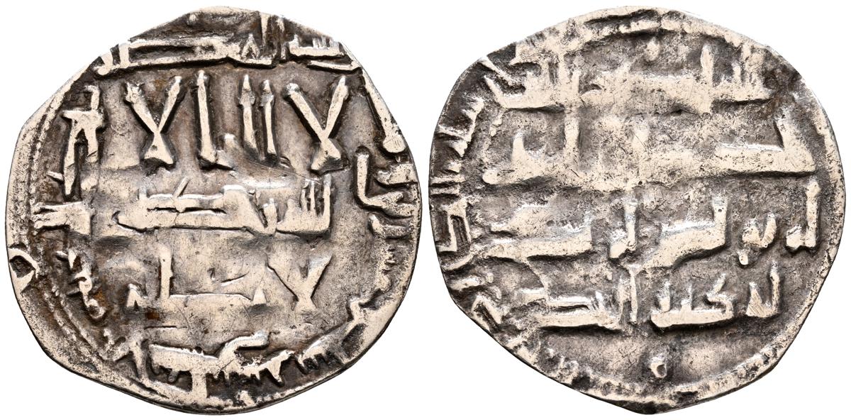 EMIRATO INDEPENDIENTE DE CORDOBA, Abd al-Rahman II. Dirham. (Ar. 2,56g/27mm). 229H. al-Ándalus / الاندلس. (Vives 189; Frochoso 229.14). Segunda emisión. MBC+. Acuñacion floja. Restos de brillo original en anverso.