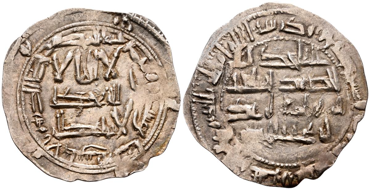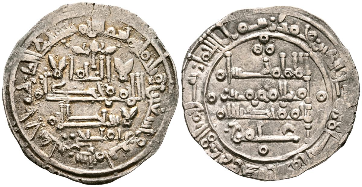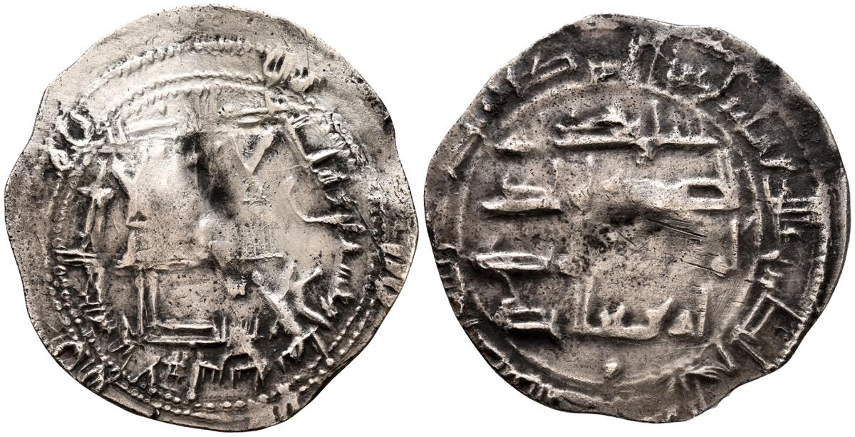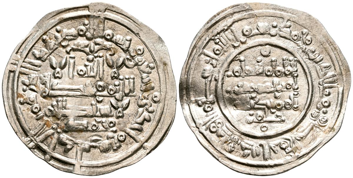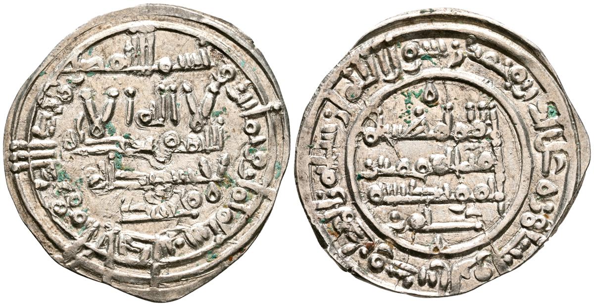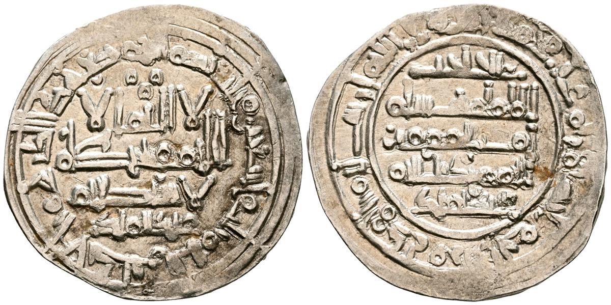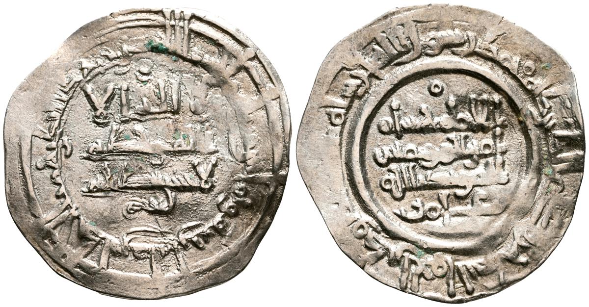 EMIRATO INDEPENDIENTE DE CORDOBA, Abd al-Rahman II. Dirham. (Ar. 2,68g/26mm). 229H. al-Ándalus / الاندلس. (Vives 187; Frochoso no cita esta combinación de adornos). EBC+. Vano de acuñación. Leve tono de monetario.