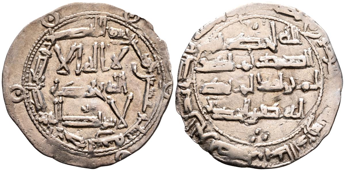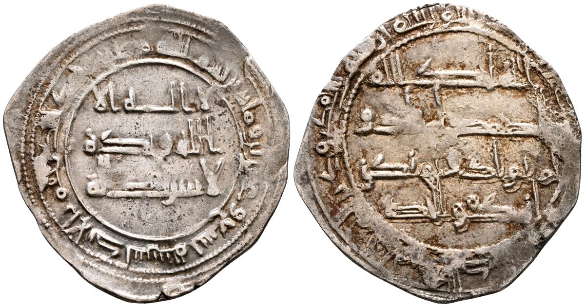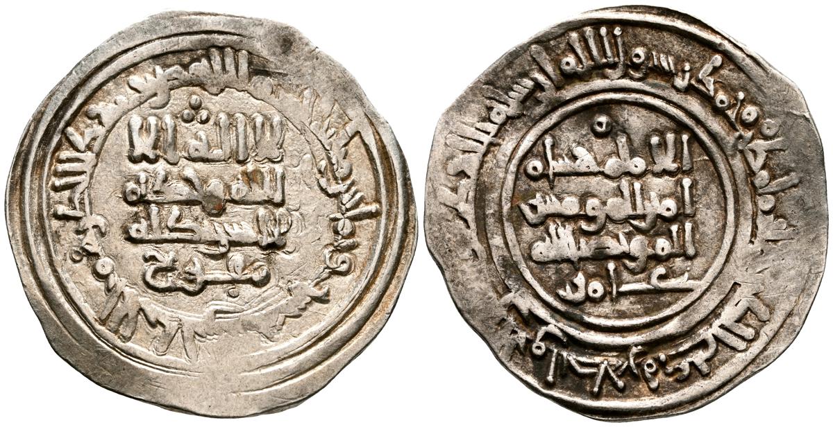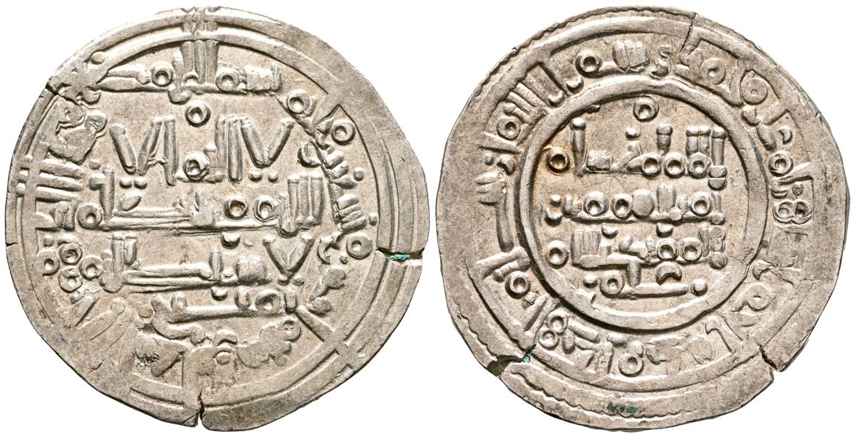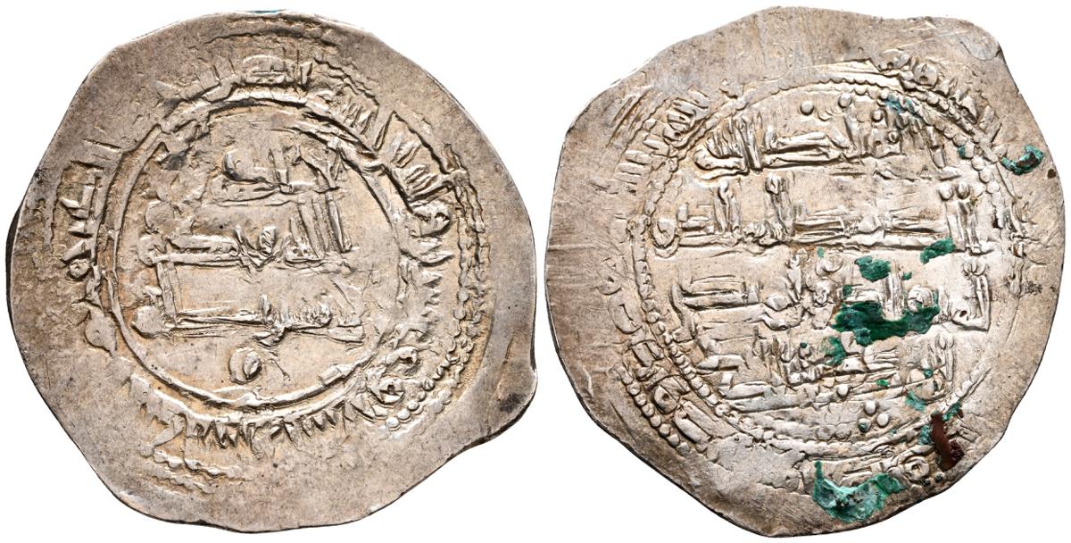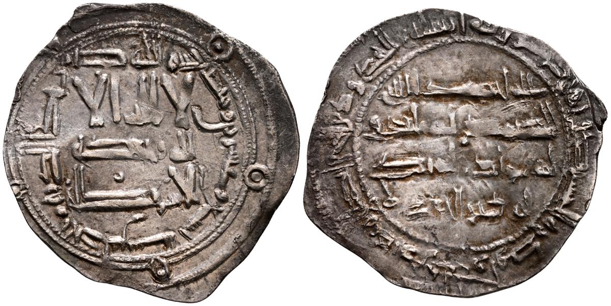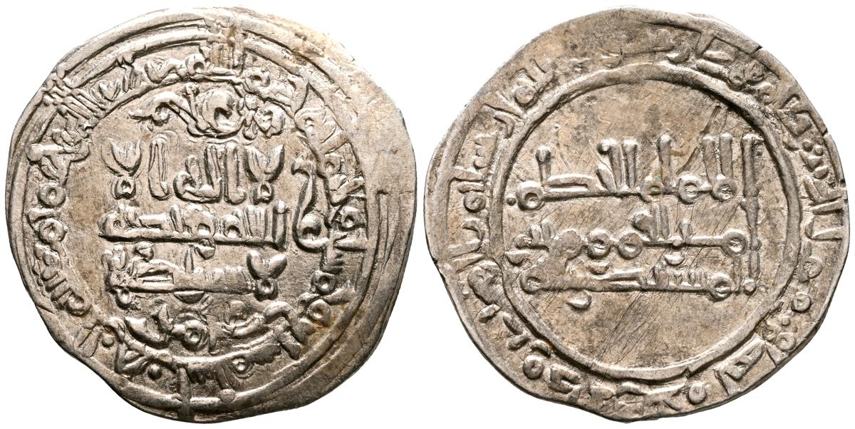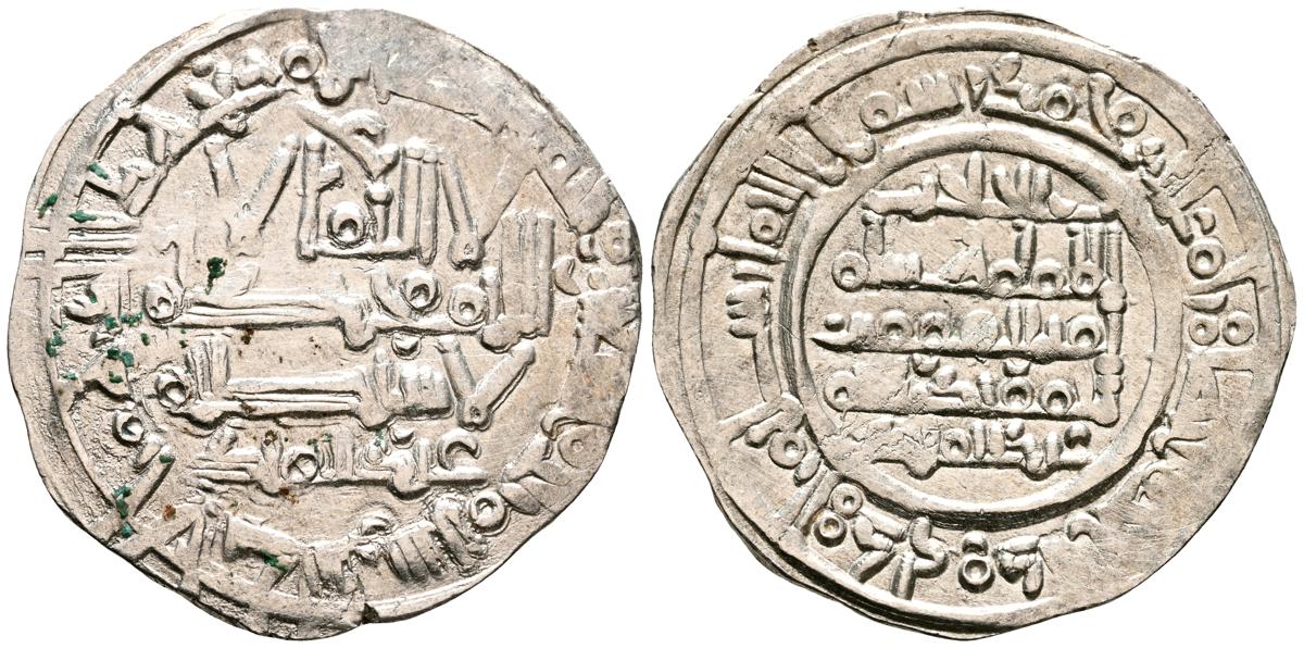 EMIRATO INDEPENDIENTE DE CORDOBA, Abd al-Rahman II. Dirham. (Ar. 2,68g/26mm). 229H. al-Ándalus / الاندلس. (Vives 187; Frochoso no cita esta combinación de adornos). EBC+. Vano de acuñación. Leve tono de monetario.