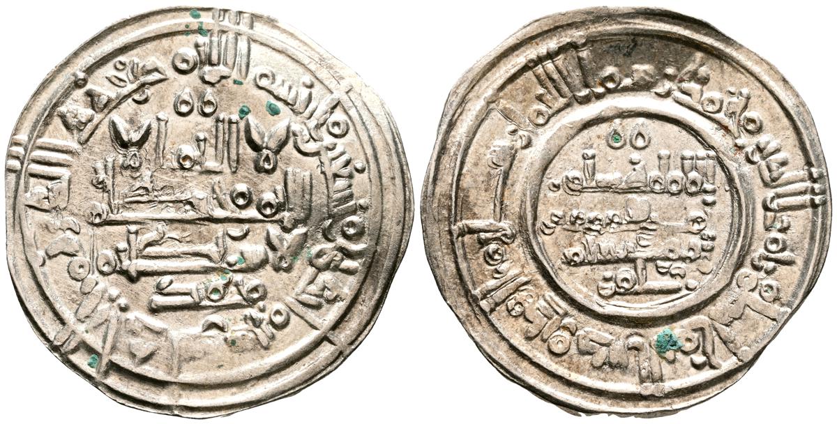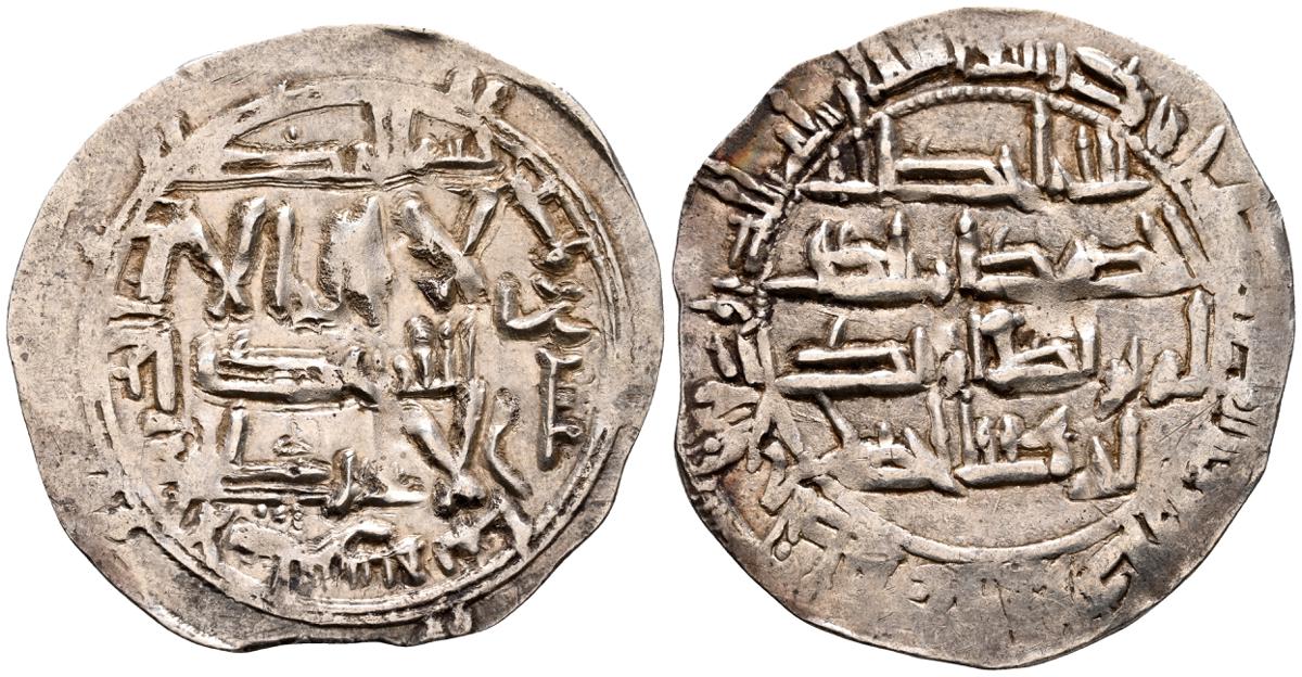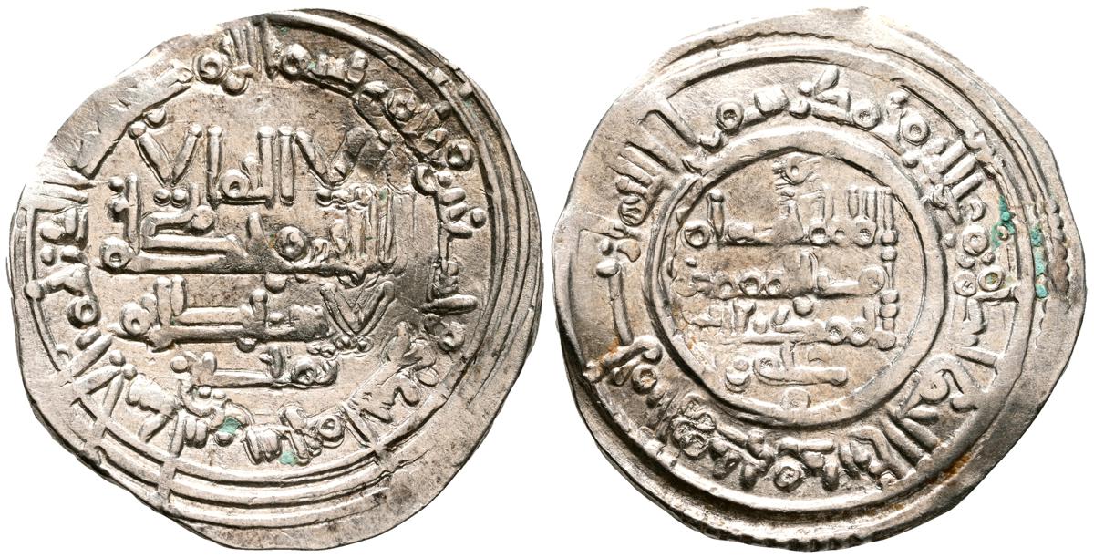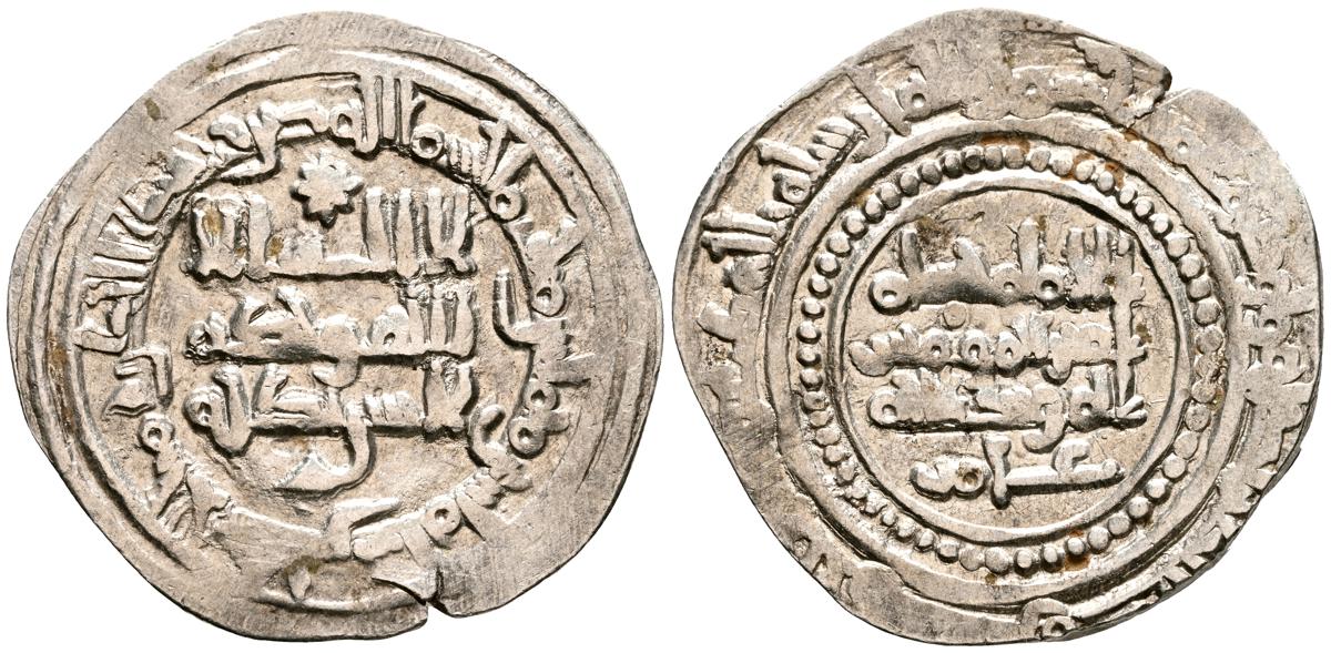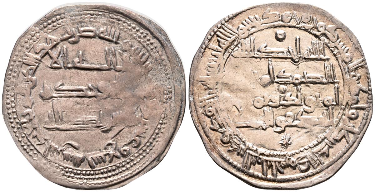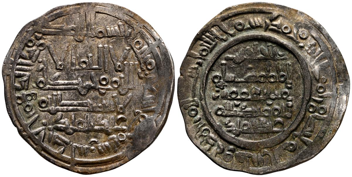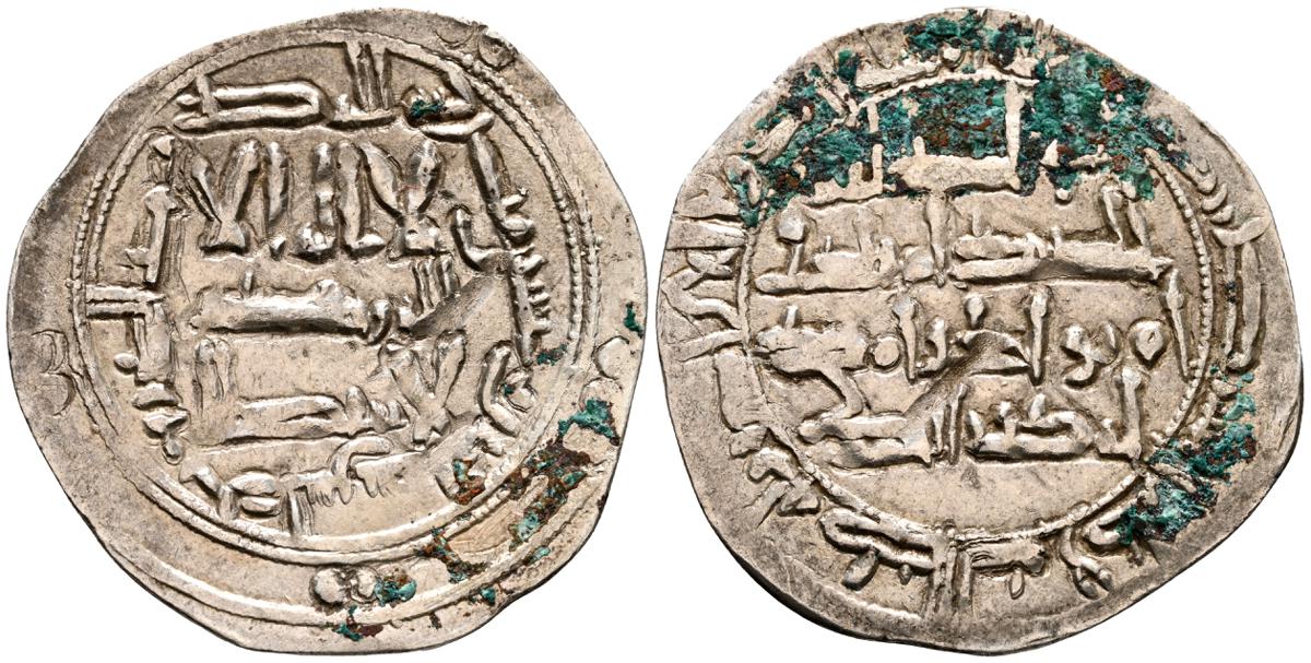 EMIRATO INDEPENDIENTE DE CORDOBA, Abd al-Rahman II. Dirham. (Ar. 2,68g/26mm). 229H. al-Ándalus / الاندلس. (Vives 187; Frochoso no cita esta combinación de adornos). EBC+. Vano de acuñación. Leve tono de monetario.