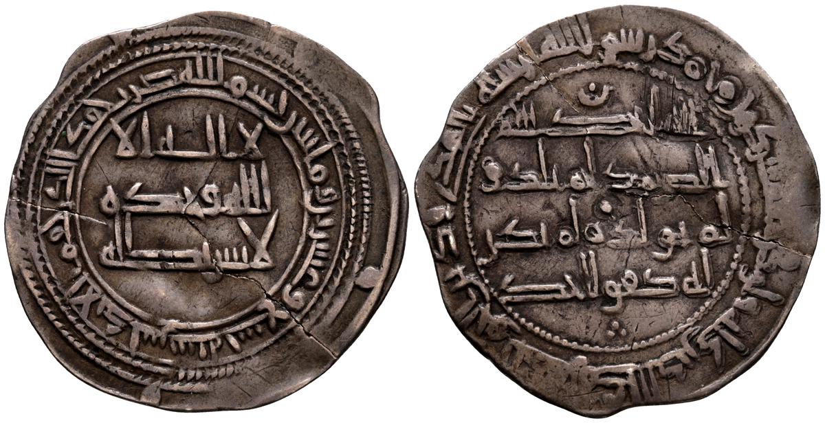 EMIRATO INDEPENDIENTE DE CORDOBA, Abd al-Rahman II. Dirham. (Ar. 2,57g/25mm). 229H. al-Ándalus / الاندلس. (Vives 187; Frochoso 229.8). Segunda emisión. MBC+. Grietas.