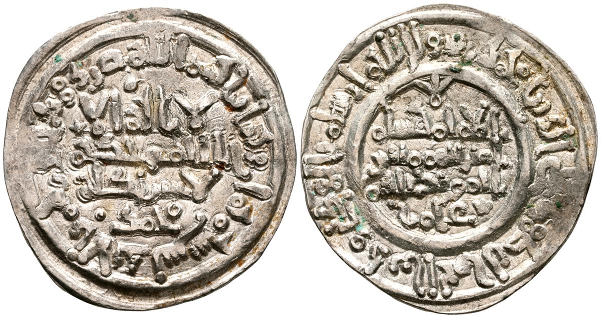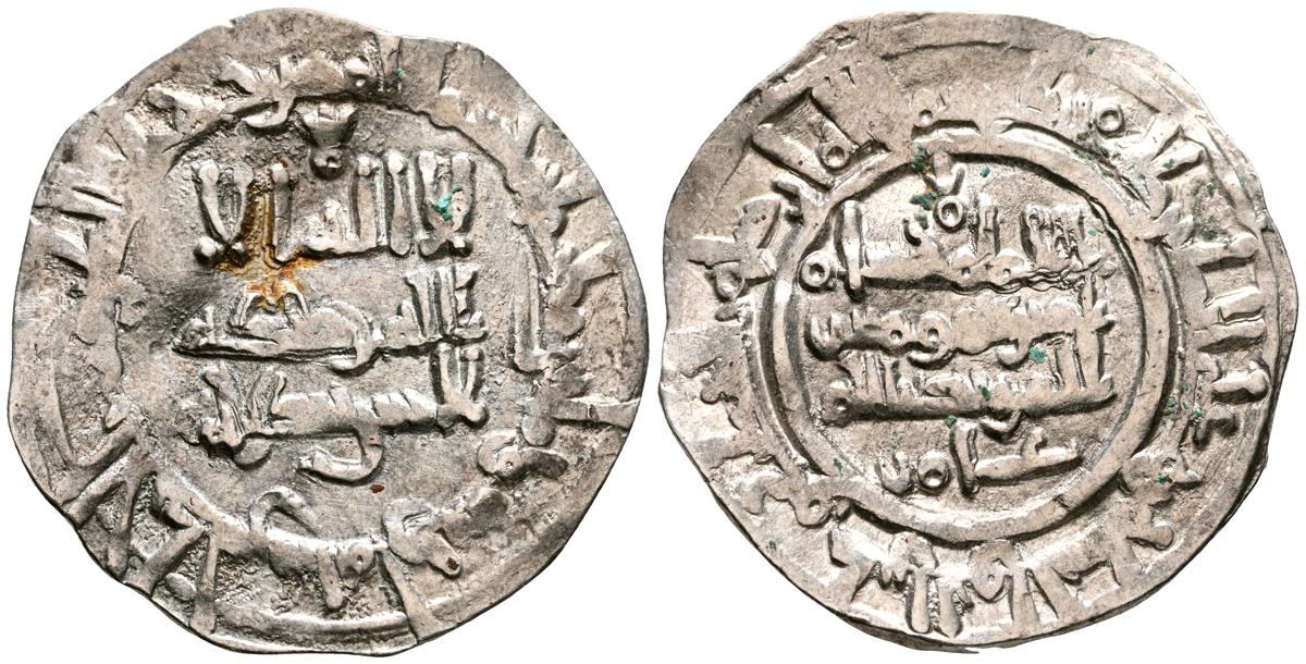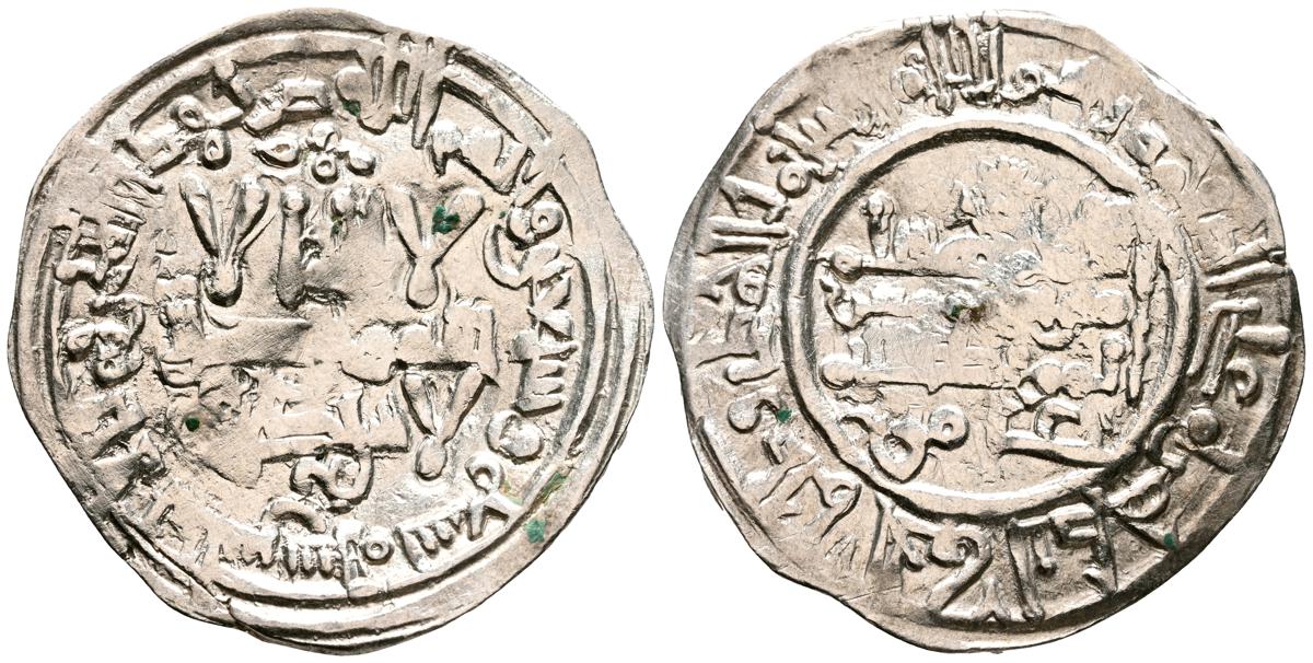 CALIFATO DE CORDOBA, Hisham II. Dirham. (Ar. 3,54g/24mm). 390H. al-Ándalus / الاندلس. (Vives 545; Frochoso 390.22). Citando a Muhammad / محمد en la IA. y 'Āmir / عامر en la IIA. EBC-. Atractivo ejemplar.