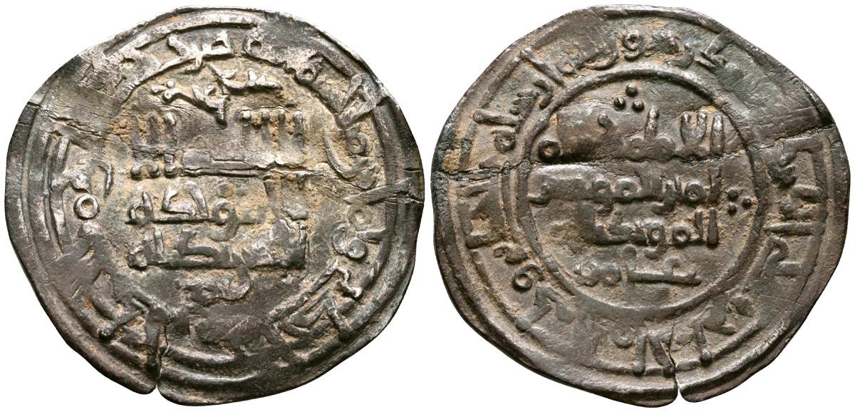 CALIFATO DE CORDOBA, Hisham II. Dirham falso de época. (Ae. 3,21g/23mm). Ceca y fecha no visibles. (Tipo Vives 514 y Frochso 381.69). Citando a 'Āmir / عامر en IIA. MBC+. Atractivo ejemplar.