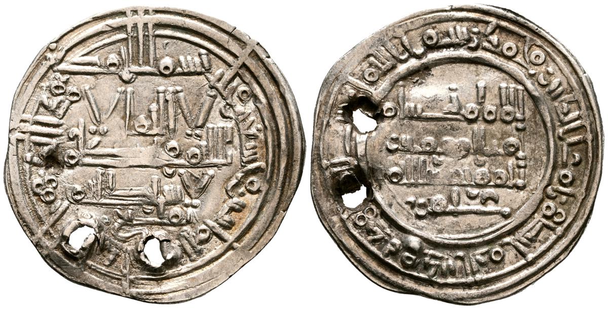 EMIRATO INDEPENDIENTE DE CORDOBA, Abd al-Rahman II. Dirham. (Ar. 2,44g/26mm). 227H. al-Ándalus / الاندلس. (Vives 181; Frochoso 227.4). MBC. Perforación con remache de compensación de peso.