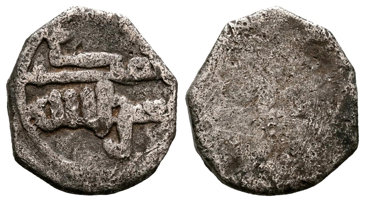 ALMOHADES, Anónima citando a Al-Mahdi. Dirham. (Ar. 1,56g/14mm). S/D. (Vives 2088; Medina 201.a; Hohertz 578, adorno tipo D). Singular adorno en lugar de ceca. MBC+. Oxidaciones.