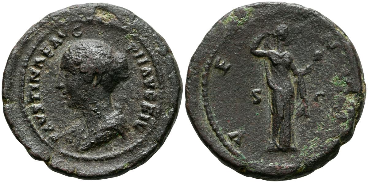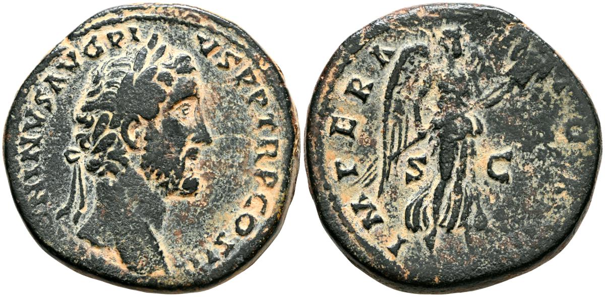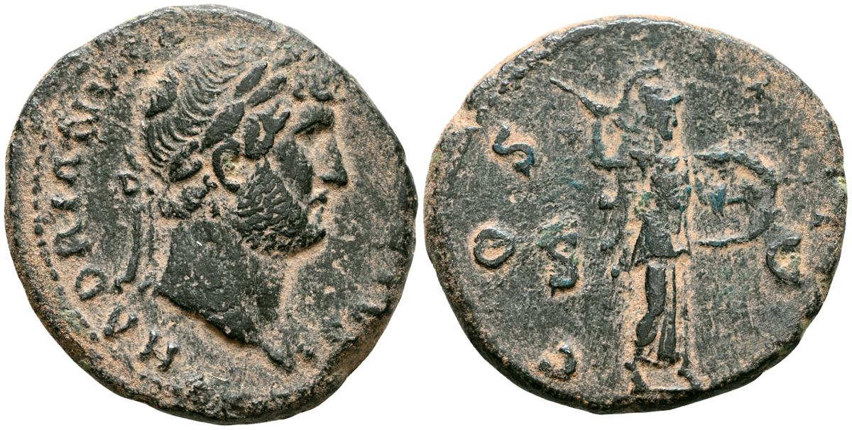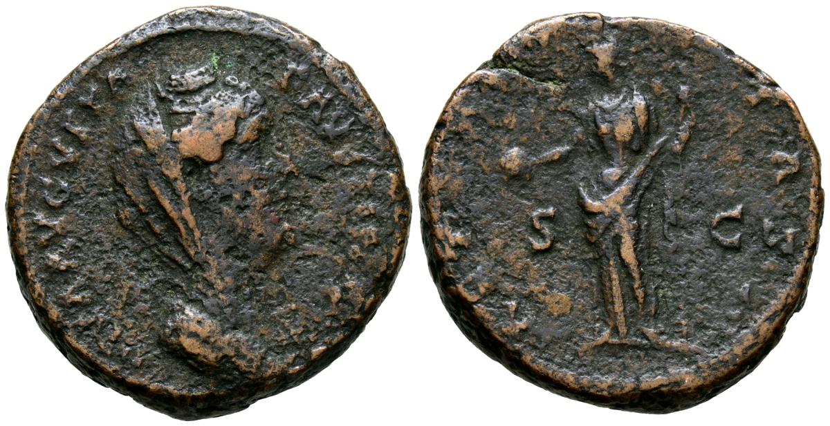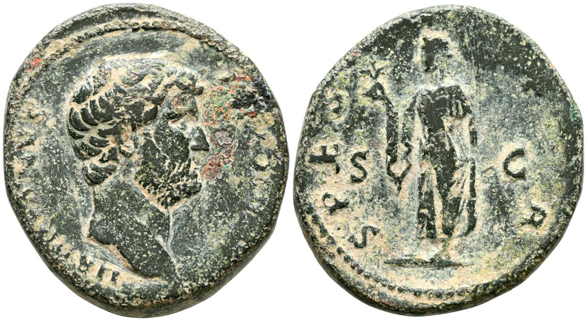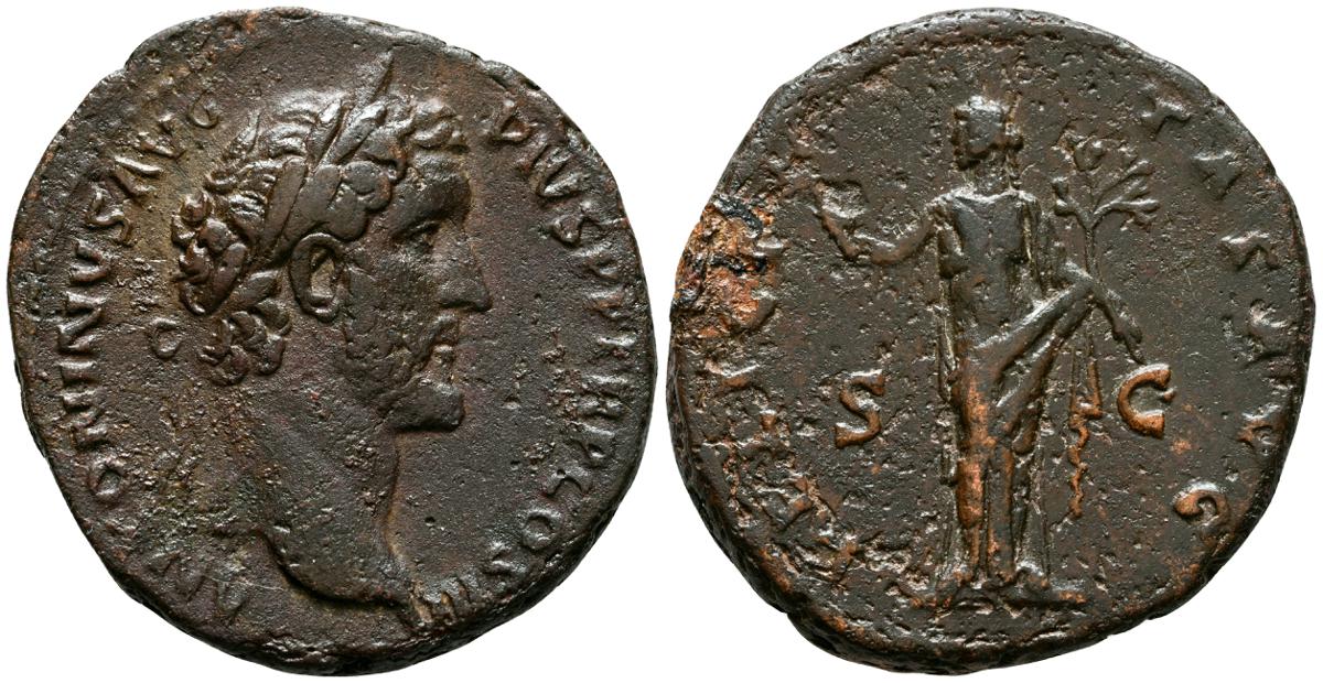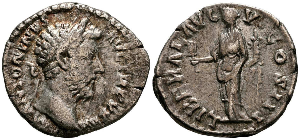 MARCO AURELIO. As. (Ae. 10,88g/25mm). 174-175 d. C. Roma. (RIC 1142). Anv: Cabeza laureada de Marco Aurelio a la derecha, alrededor leyenda: M ANTONINVS AVG TR P XXIX. Rev: Personificación del río Tíber reclinado hacia la izquierda, sosteniendo una caña en la mano izquierda, apoyando el brazo derecho en la proa del barco y apoyando el codo izquierdo en una jarra de la que fluye agua, entre: S-C, alrededor leyenda: IMP VII COS III. BC+. Escasa.