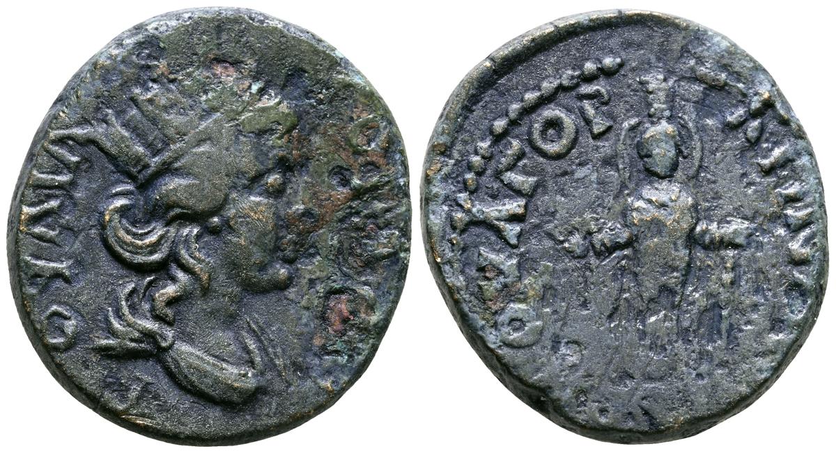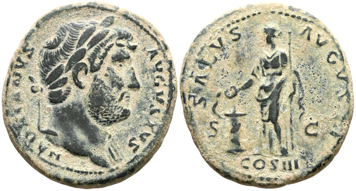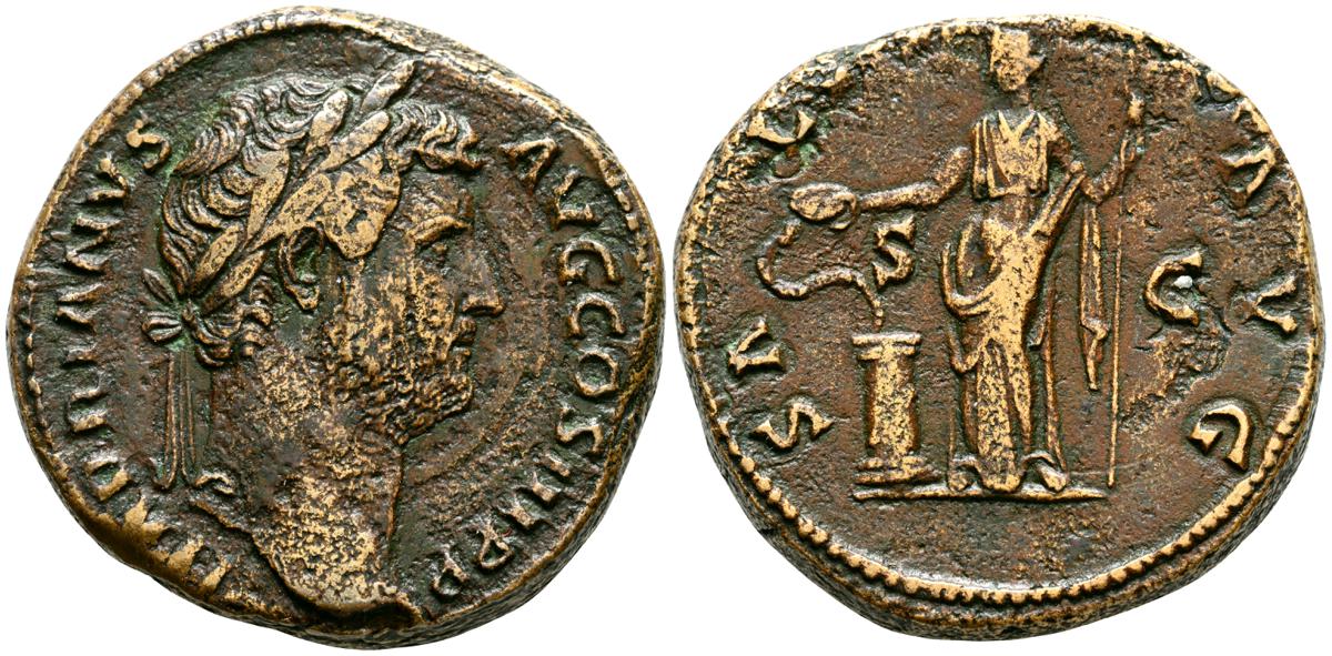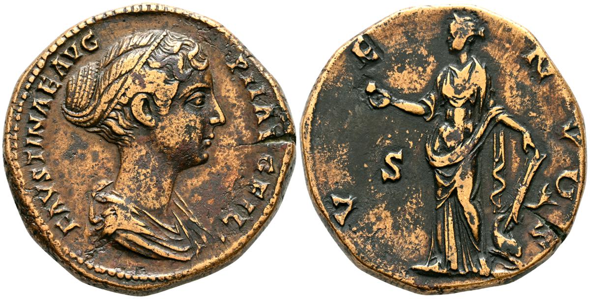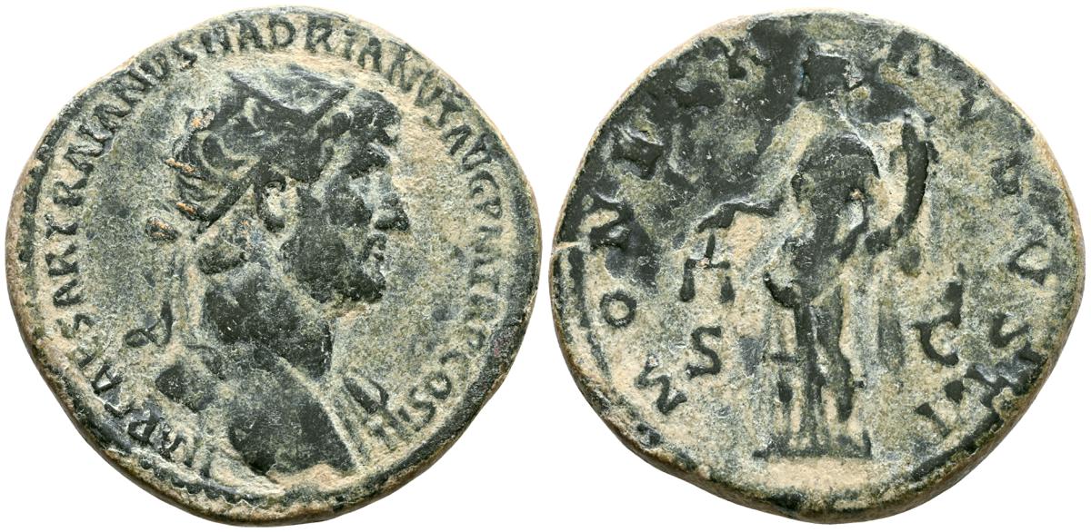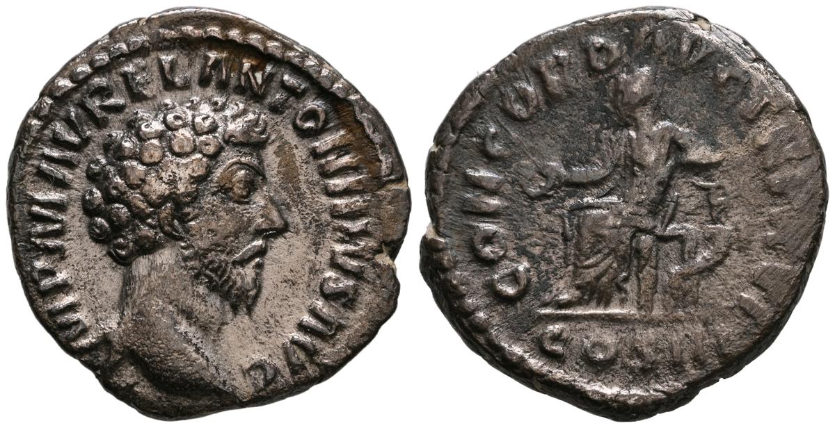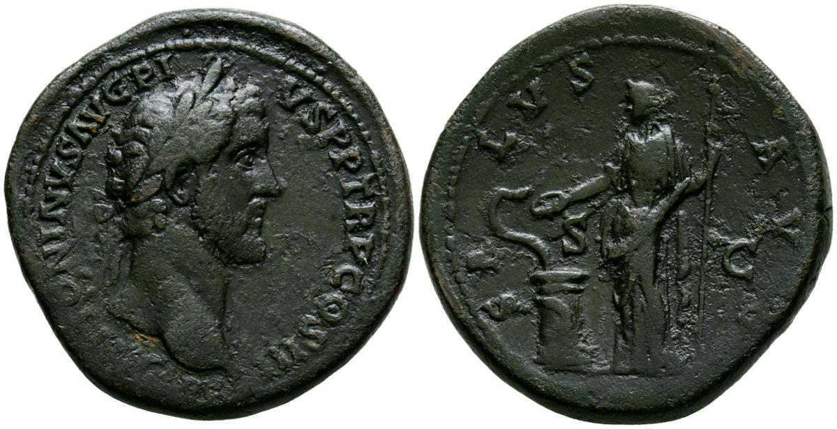MARCO AURELIO. As. (Ae. 10,88g/25mm). 174-175 d. C. Roma. (RIC 1142). Anv: Cabeza laureada de Marco Aurelio a la derecha, alrededor leyenda: M ANTONINVS AVG TR P XXIX. Rev: Personificación del río Tíber reclinado hacia la izquierda, sosteniendo una caña en la mano izquierda, apoyando el brazo derecho en la proa del barco y apoyando el codo izquierdo en una jarra de la que fluye agua, entre: S-C, alrededor leyenda: IMP VII COS III. BC+. Escasa.