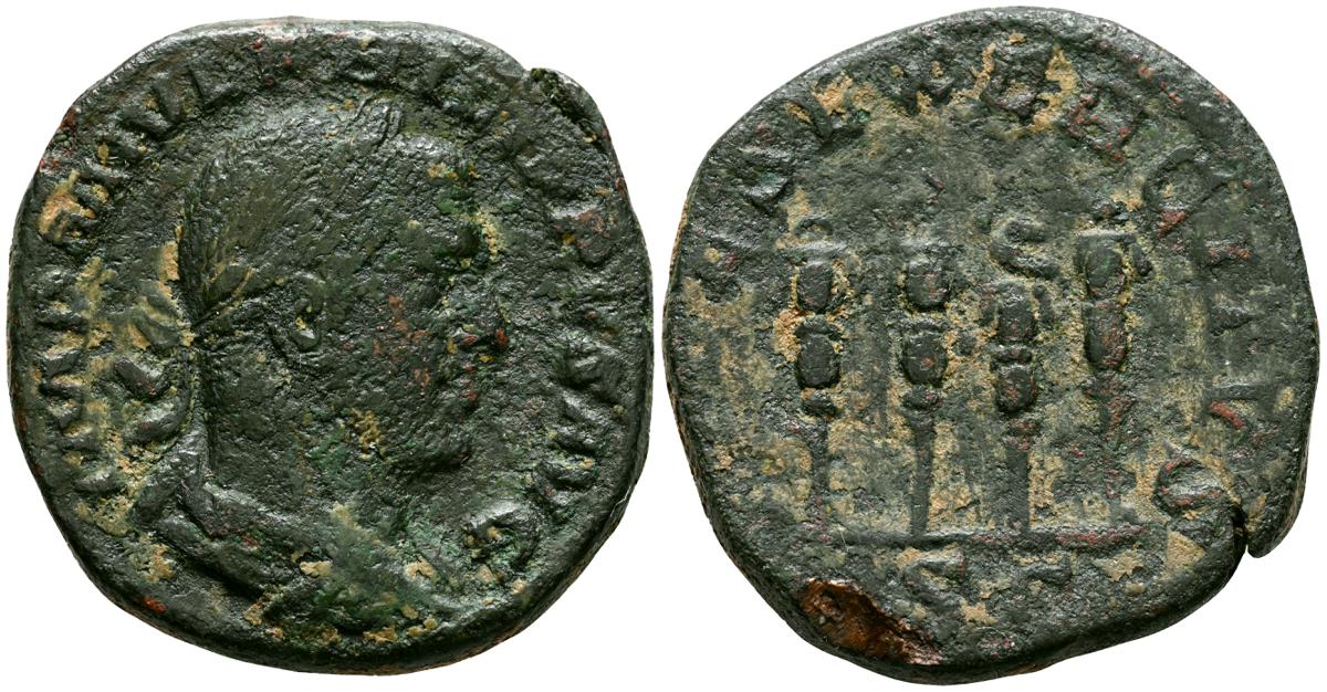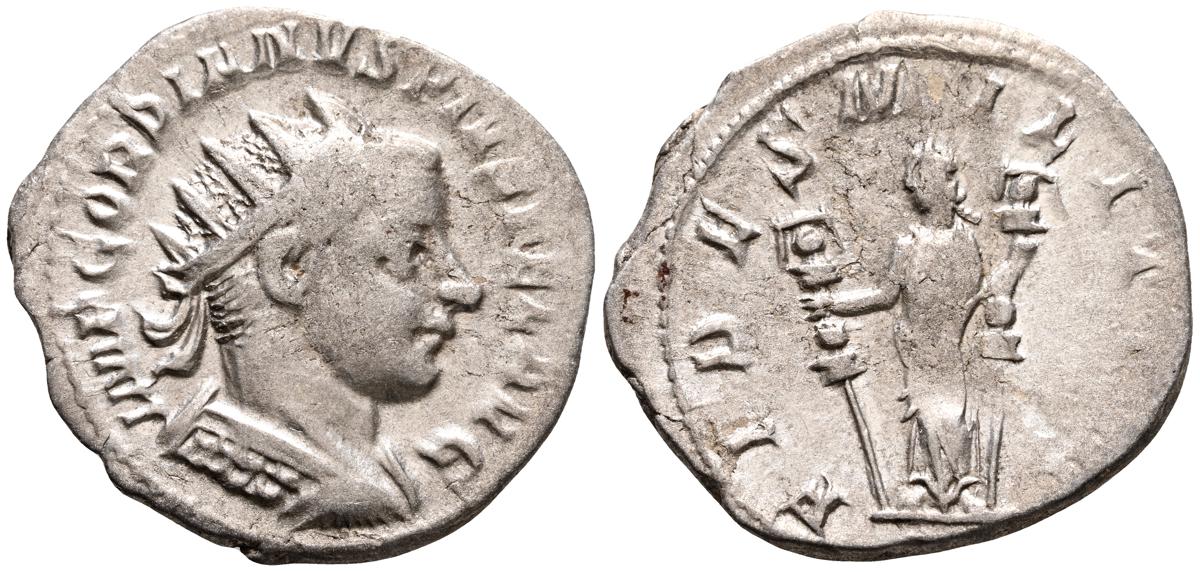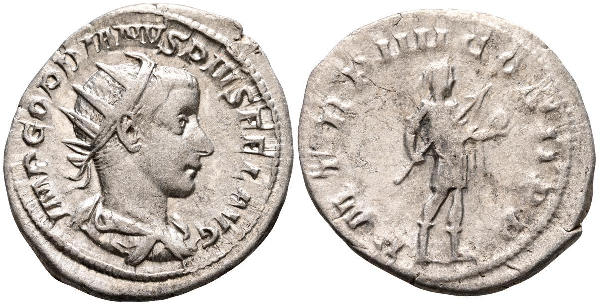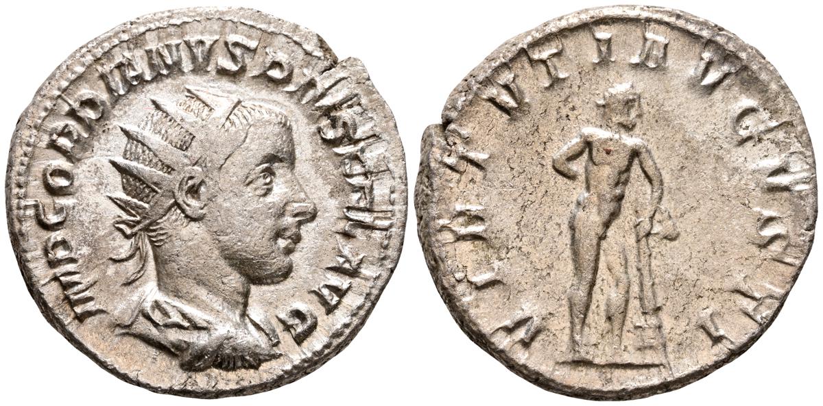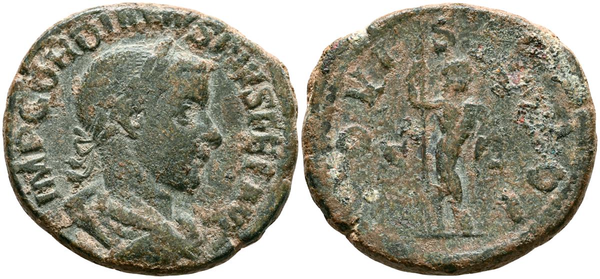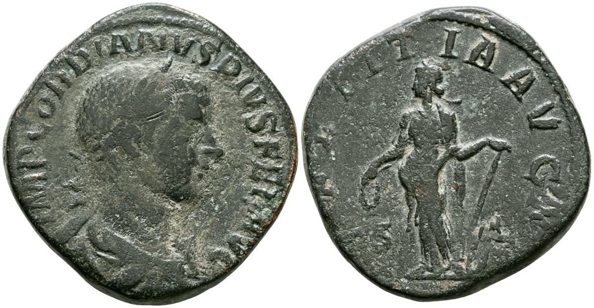 GORDIANO III. Sestericio. (Ae. 16,68g/31mm). 241-244 D.C. Roma. (RIC 298a). Anv: Busto laureado, drapeado y acorazado de Gordiano III a la derecha, alrededor leyenda: IMP GORDIANVS PIVS FEL AVG. Rev: Júpiter desnudo y estante de frente con cabeza a la derecha, portando cetro, entre: S-C, alrededor leyenda: IOVI STATORI. MBC/MBC-.