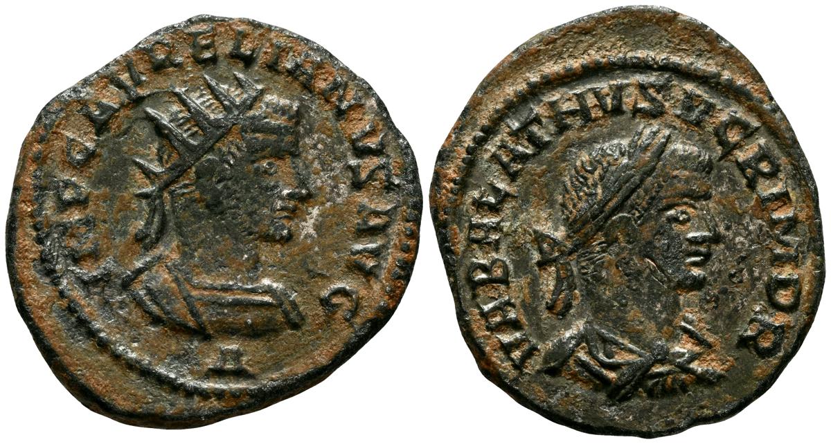 AURELIANO y VABALATO. Antoniniano. (Ae. 3,50g/21mm). 270-272 d.C. Antioquia. (RIC 381). Anv: Busto radiado y drapeado de Aureliano a derecha, debajo S, alrededor leyenda: IMP C AVRELIANVS AVG. Rev: Busto laureado y drapeado de Vabalato a derecha, alrededor leyenda: VABALATHVS V C R IM D R. MBC.