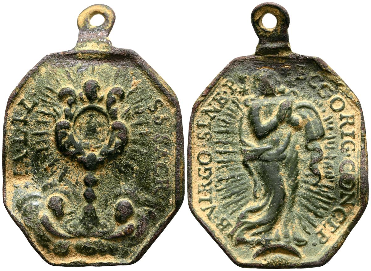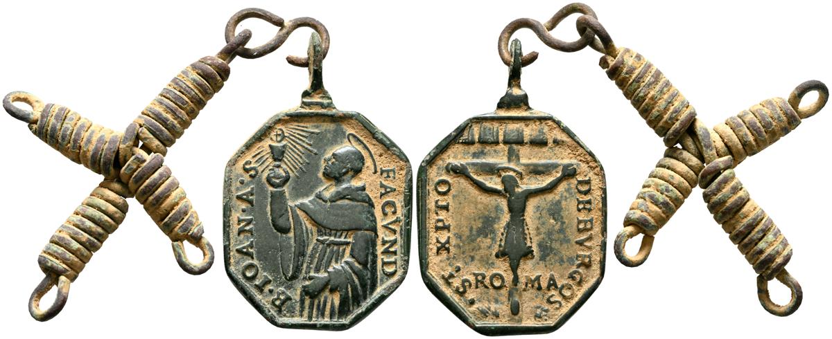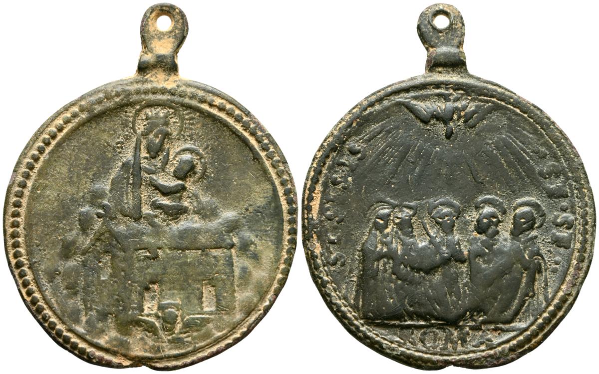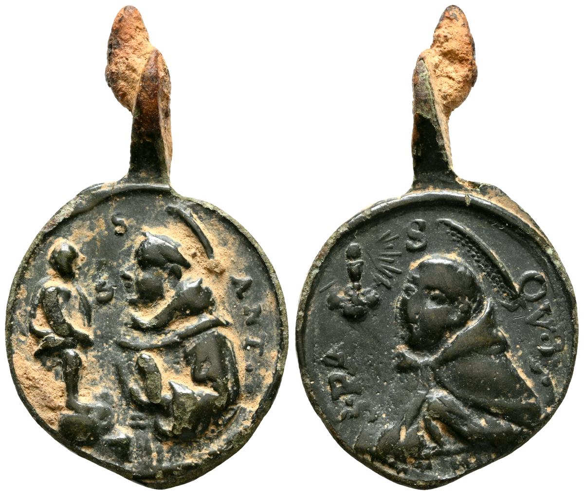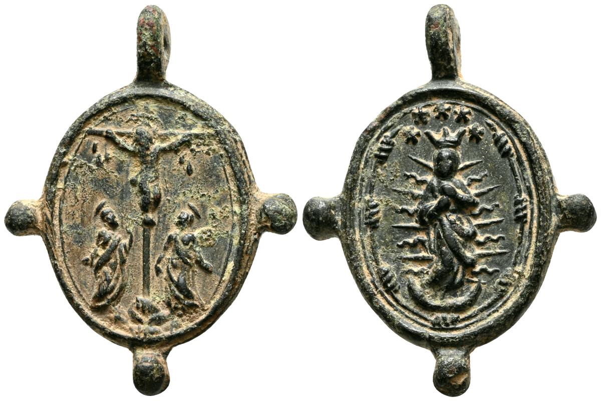 Interesantísimo conjunto de medallas devocionales, compuesto por 23 preciosas piezas, realizas entre el siglo XVII y XIX. A destacar un gran variedad de abvocaciones y santos como; Ntrs. Sr. de Atocha; Ntrs. Sr. de Monserrat; Mater Dolorosa, Inmaculada Concepción; Santa Barbara, Corazón de Jesús y María, S. Miguel Arcángel, S. Juan Evangelista y S. Antonio en otros. Diferentes variantes, medidas y estados de conservación. A EXAMINAR
