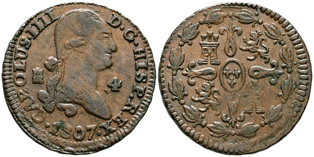 CARLOS IV (1788-1808). 4 Maravedís. (Ae. 5,33g/26mm). 1807. Segovia. (Cal-2019-61). MBC. Bonito tono.