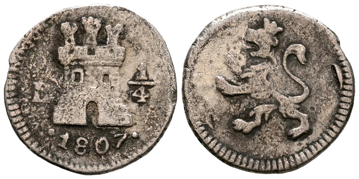 CARLOS IV (1788-1808). 1/4 Real. (Ar. 0,85g/12mm). 1807. Lima. (Cal-2019-118). BC+.