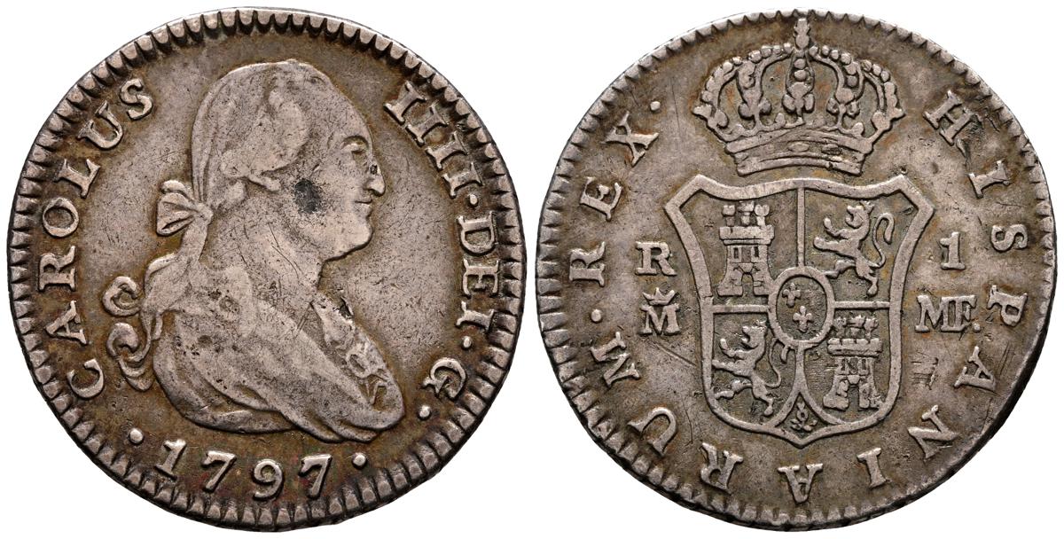 CARLOS IV (1788-1808). 1 Real. (Ar. 2.96g/20mm). 1797. Madrid MF. (Cal-2019-417). MBC. Bonito tono.