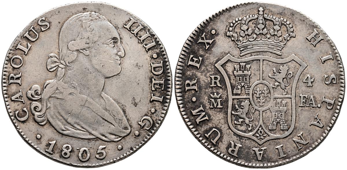 CARLOS IV (1788-1808). 4 Reales. (Ar. 13,89g/33mm). 1805. Madrid FA. (Cal-2019-786). MBC. Escaso ejemplar.