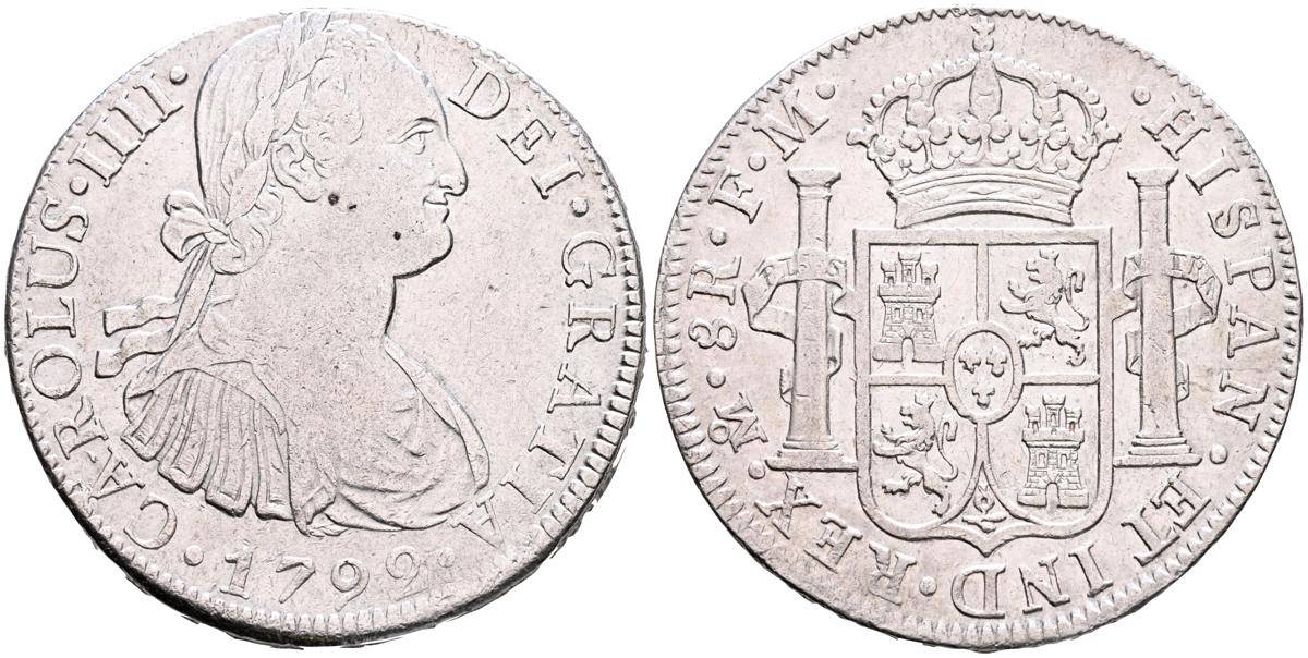 CARLOS IV (1788-1808). 8 Reales. (Ar. 26,78g/38mm). 1792. Mexico FM. (Cal-2019-954). MBC+.
