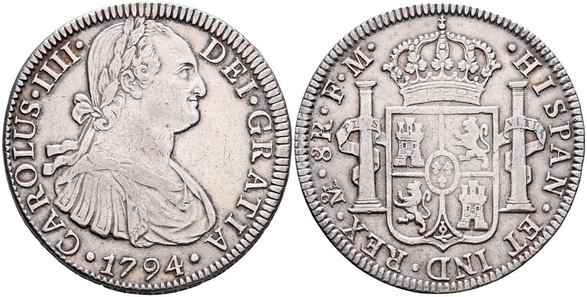 CARLOS IV (1788-1808). 8 Reales. (Ar. 27,00g/39mm). 1794. México FM. (Cal-2019-956). MBC.