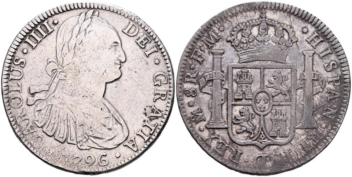 CARLOS IV (1788-1808). 8 Reales. (Ar. 26,70g/39mm). 1796. México FM. (Cal-2019-959). MBC-. Limpiado.
