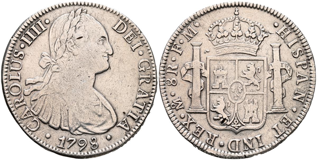 CARLOS IV (1788-1808). 8 Reales. (Ar. 26,66g/39mm). 1798. México FM. (Cal-2019-961). MBC. Limpiado.