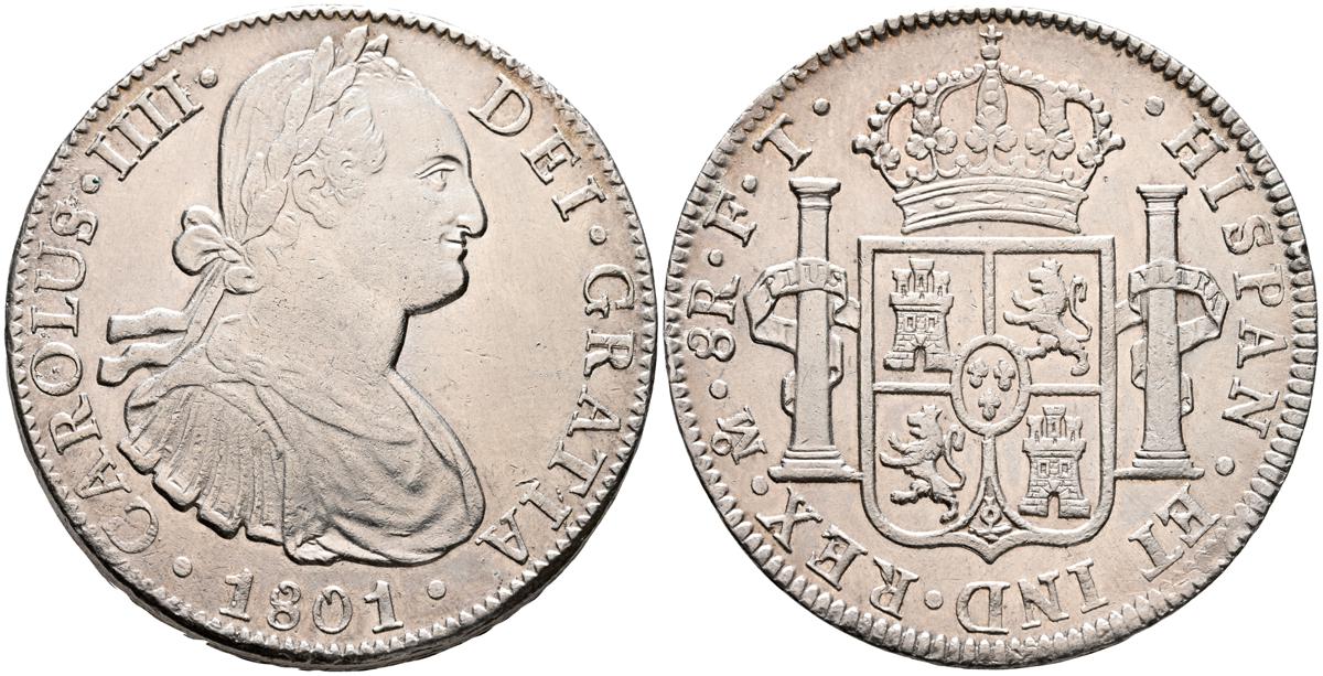 CARLOS IV (1788-1808). 8 Reales. (Ar. 26,73g/40mm). 1801. México FT. (Cal-2019-972). EBC-. Brillo original.