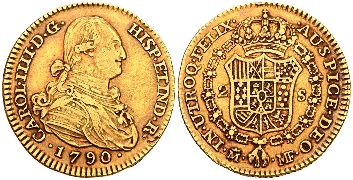 CARLOS IV (1788-1808). 2 Escudos. (Au. 6,66g/22mm). 1790. Madrid MF. (Cal-2019-1275). MBC. Bonito tono.