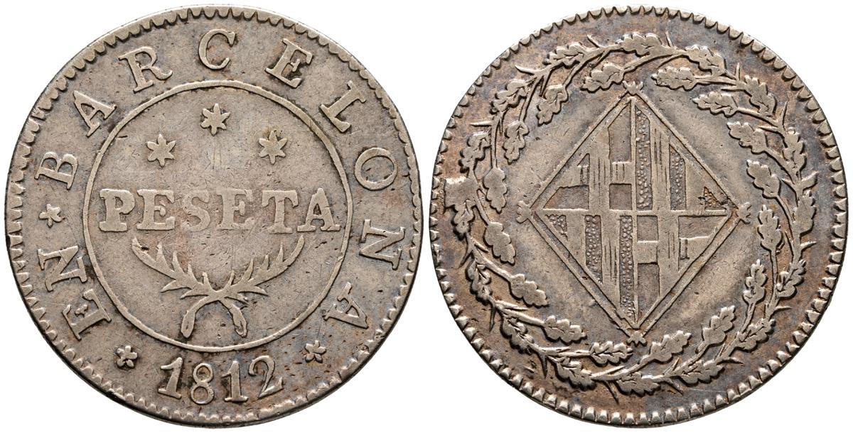 JOSÉ NAPOLEÓN (1808-1813). 1 Peseta. (Ar. 5,42g/27mm). 1812. Barcelona. (Cal-2019-36). MBC.