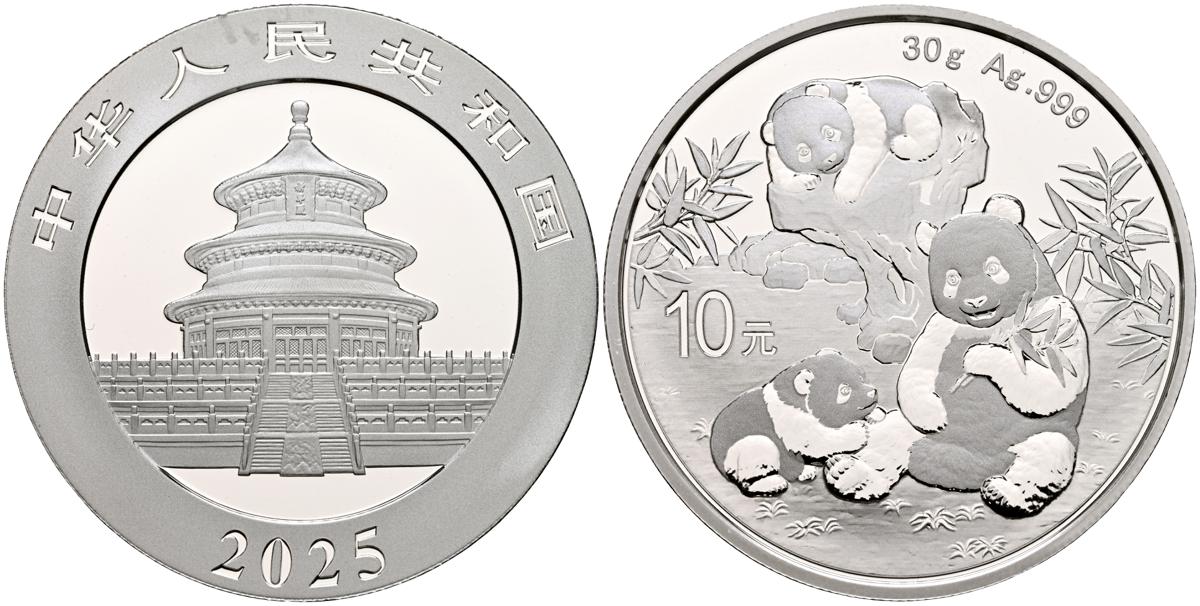CHINA. 10 Yuan. (Ar. 30,03g/40mm). 2025. Serie Panda. SC.