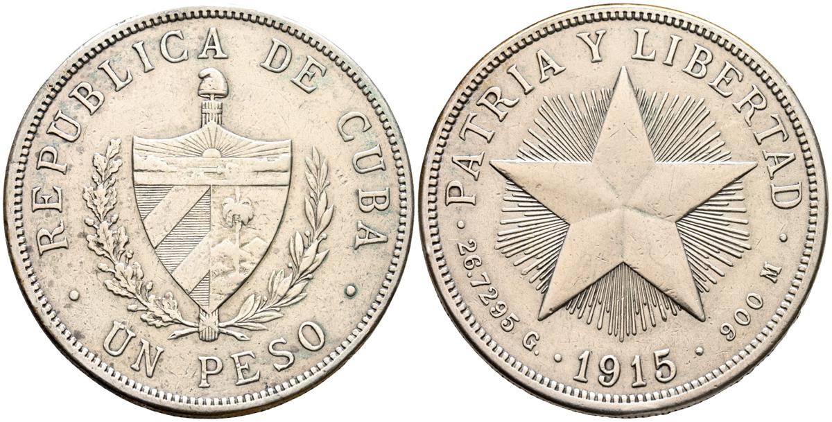 CUBA. 1 Peso. (Ar. 26,54g/38mm). 1915. (Km#15). MBC.