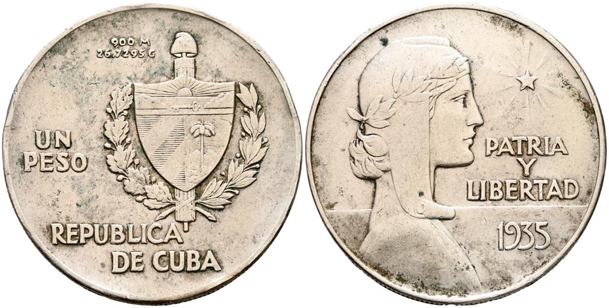 CUBA. 1 Peso. (Ar. 26,66g/38mm). 1935. (Km#22). MBC