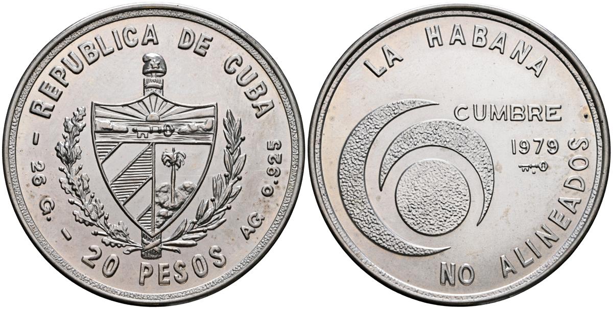 CUBA. 20 Pesos. (Ar. 26,08g/38mm). 1979. Cumbre en la Habana de los países no alineados. (Km#44). SC.