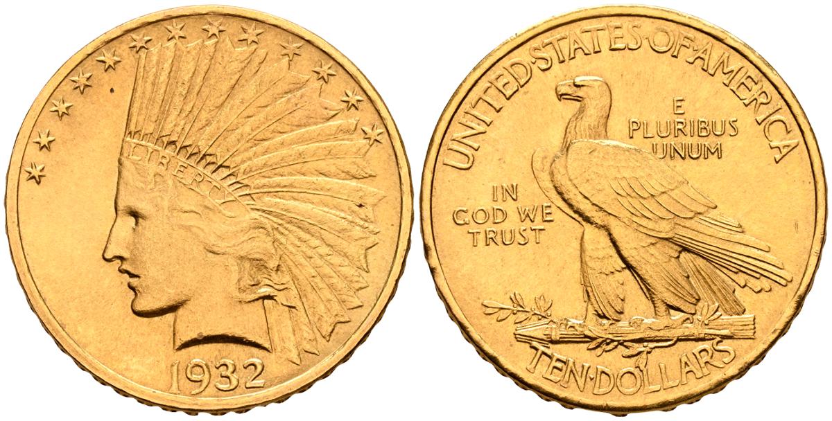 ESTADOS UNIDOS. 10 Dollars. (Au. 16,52g/27mm). 1932. Copia de joyería. Oro de 0,700 milésimas. EBC.