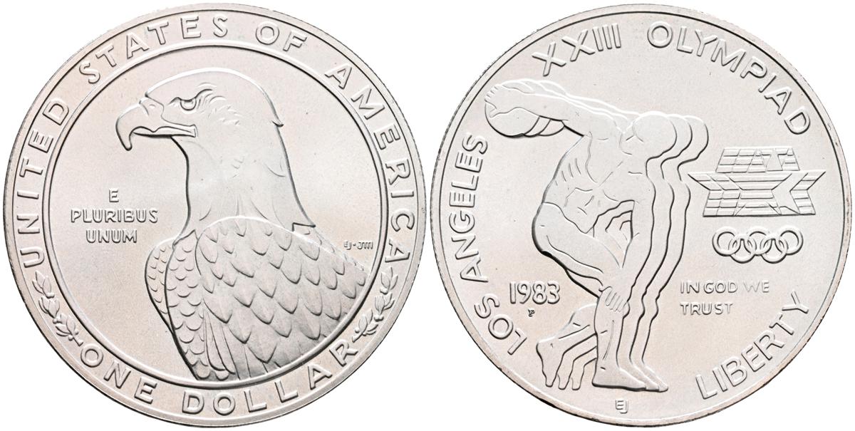 ESTADOS UNIDOS. 1 Dollar. (Ar. 27,07g/38mm). 1983. Philadelphia P. Olimpiada de Los Ángeles 84. Lanzamiento de Disco. (Km#209). SC-.