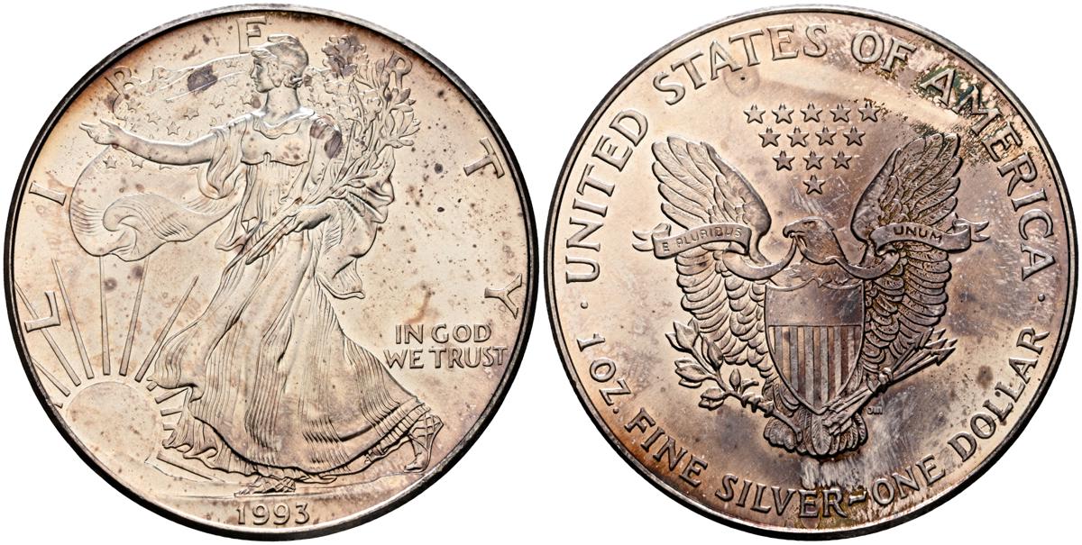 ESTADOS UNIDOS. 1 Dollar. (Ar. 31,69g/36mm). 1993. Sin marca de ceca. (Km#273). EBC. Pequeñas manchas de humedad.
